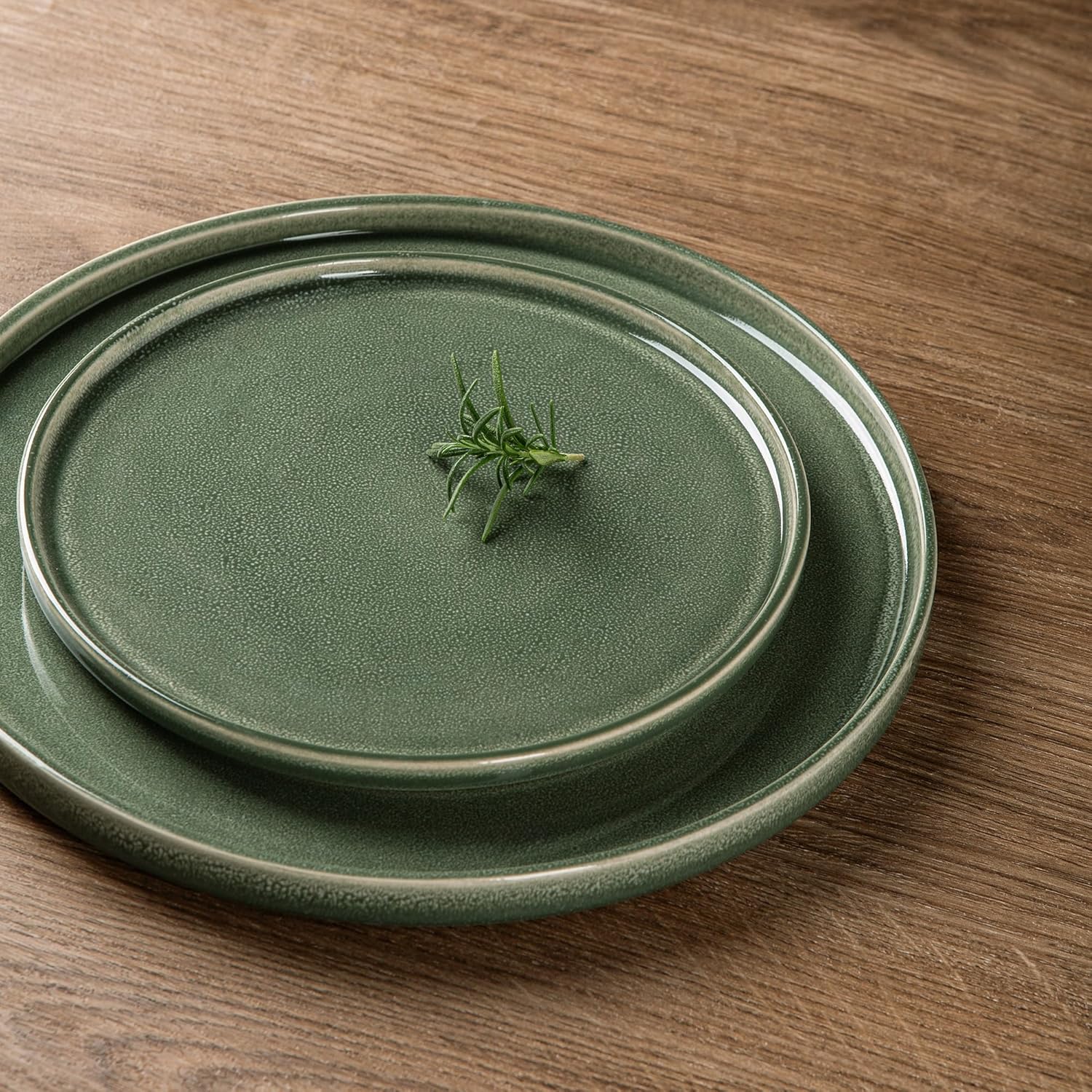 • GOOD SHAPE AND MULTI-PURPOSE: The flat dinner plate set creates a Rustic and minimalist table setting. The shape is as great as it makes. they are easier to handle and hold and they stack really well without taking up much space, stack and nestle nicely in your cupboard or shelves. Our Dinnerware set is microwave, dishwasher, and freezer safe, Perfect for everyday use, indoors or out; ideal for any kitchen It makes your food look even more delicious and makes you happy every day.