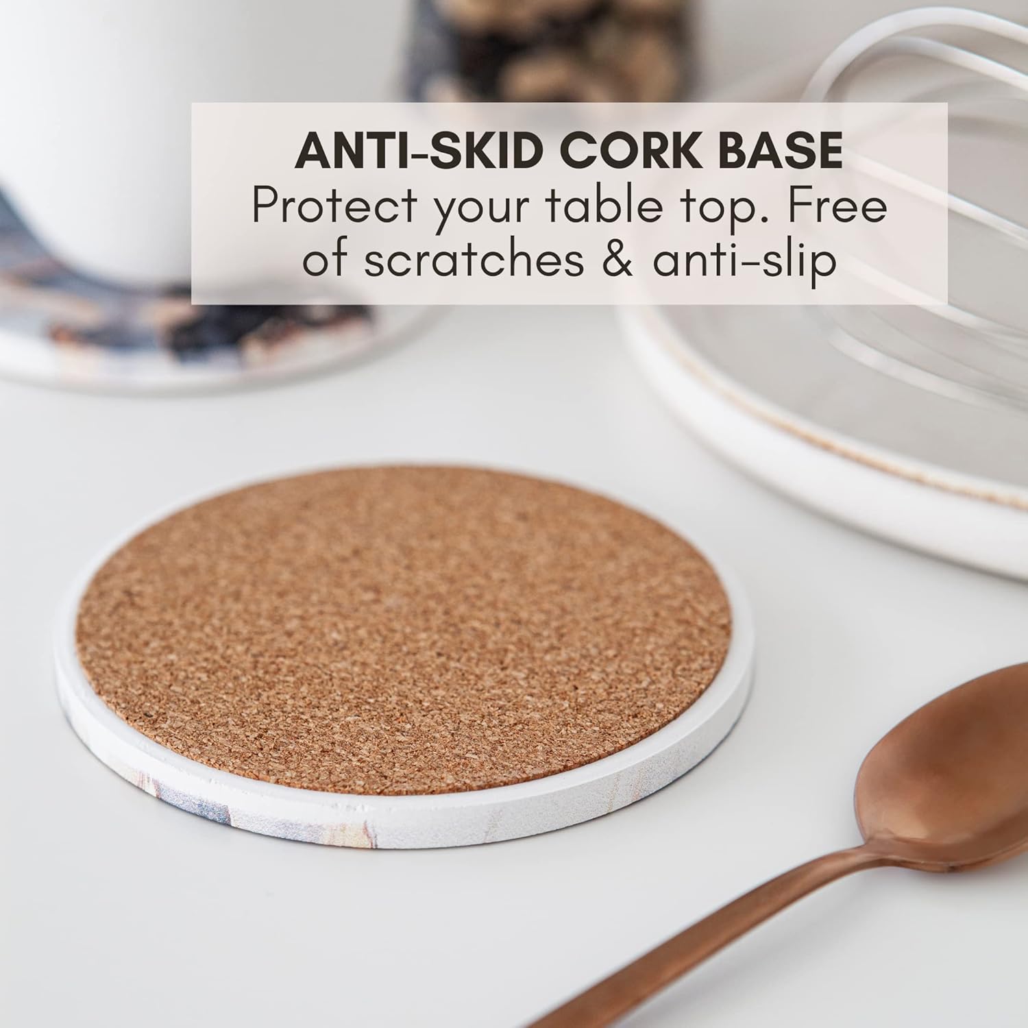 • Thoughtfully Designed: Our cool coasters for drinks come with anti-slip cork backing, ideal as water absorbing coasters for drinks. These stone coasters is perfect for farmhouse coffee table decor and best alternatives to glass or silicone coaster as they do not stick to bottom of the cups/mugs/glasses.