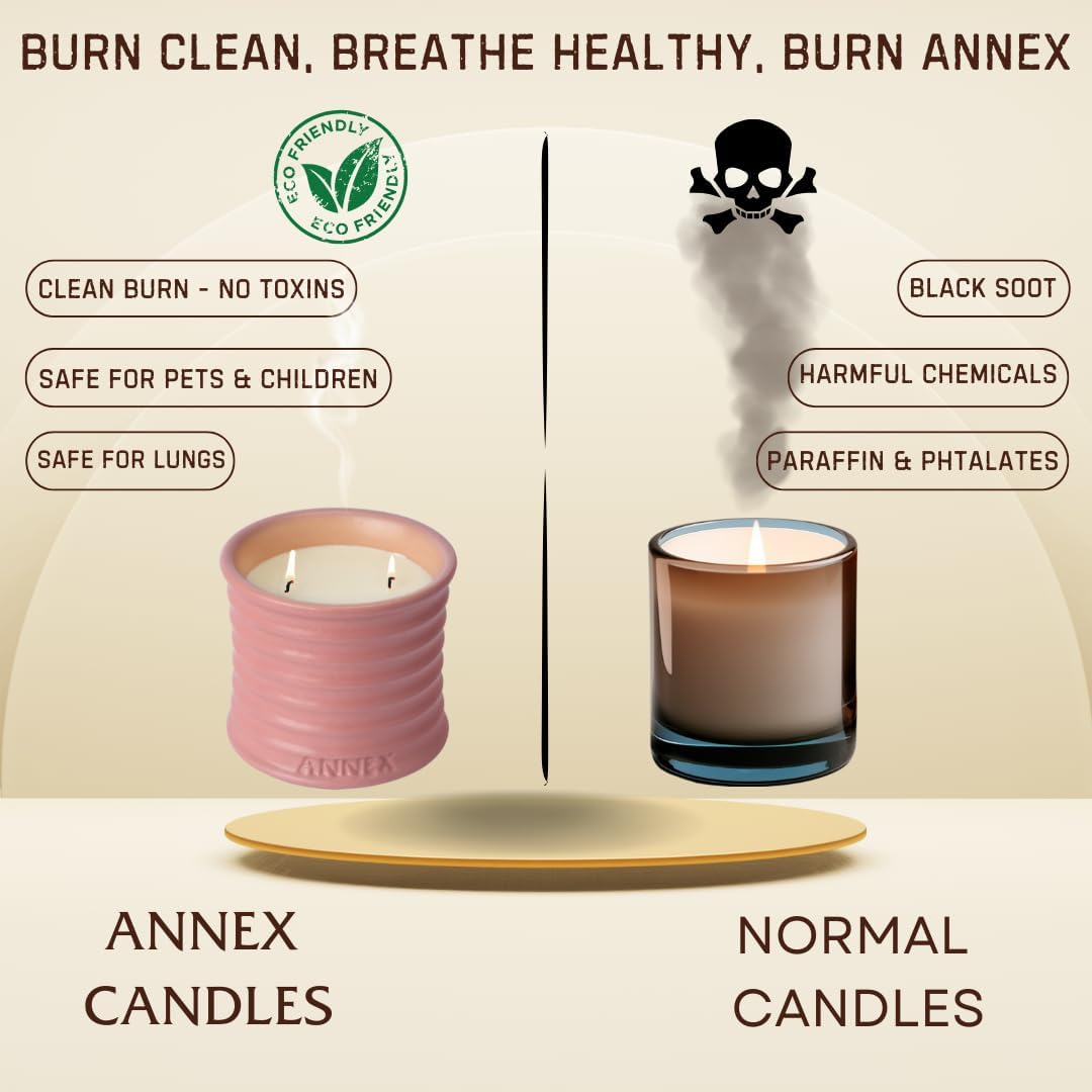 • 🕯️ HANDMADE SOY CANDLES WITH LUXURY SCENTS: Over 500,000 customers have enhanced their homes with Annex handmade soy candles for women. Featuring elegant scents such as lavender, vanilla, eucalyptus, peppermint, rose, sandalwood, and volcano. Designed to provide long-lasting fragrance in any space. Each candle is thoughtfully crafted with a clean burning of 50 hours with thoughtfully selected ingredients.