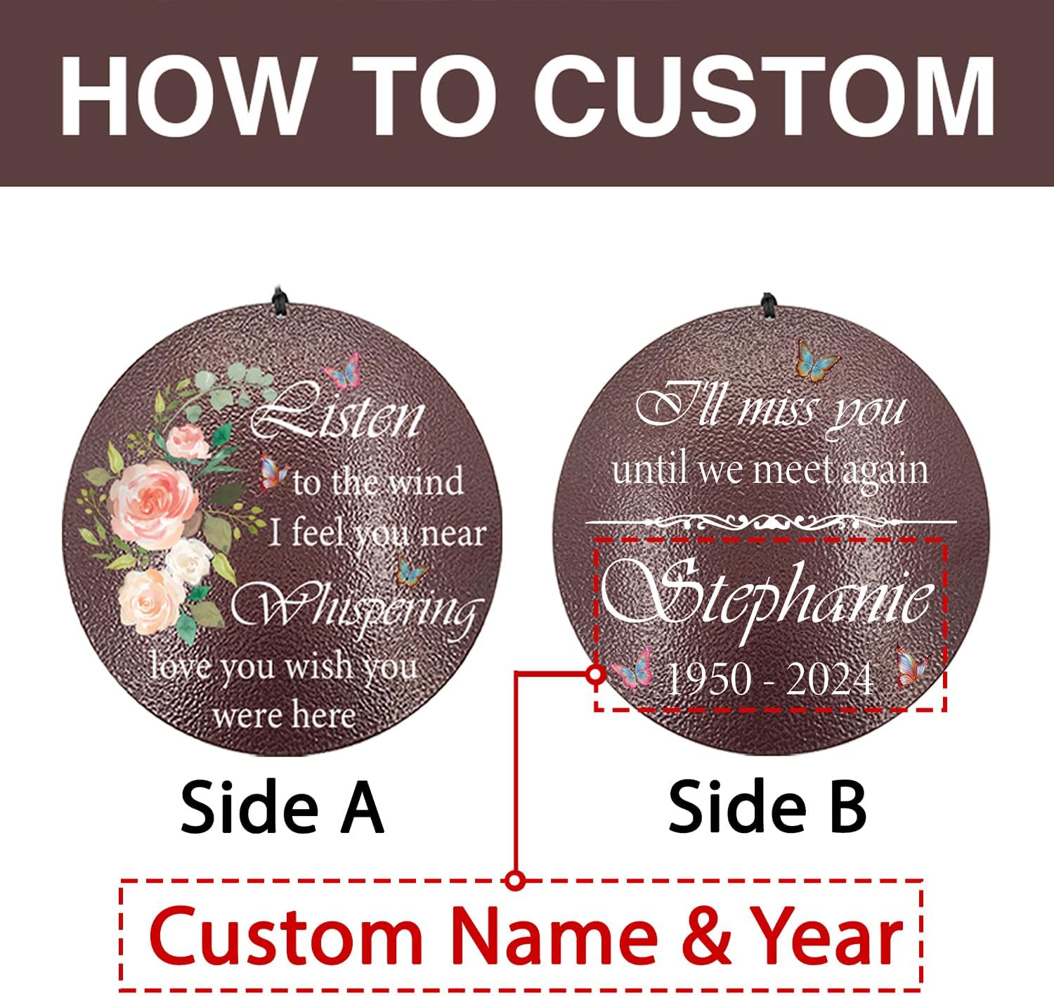 • A BETTER CHOICE THAN FLOWERS: Personalized memorial wind chimes, customized with his/her name and date to keep love in our hearts forever. Our wind chimes are tuned by wind chime experts to crash out beautiful music, a better tribute gift than flowers.