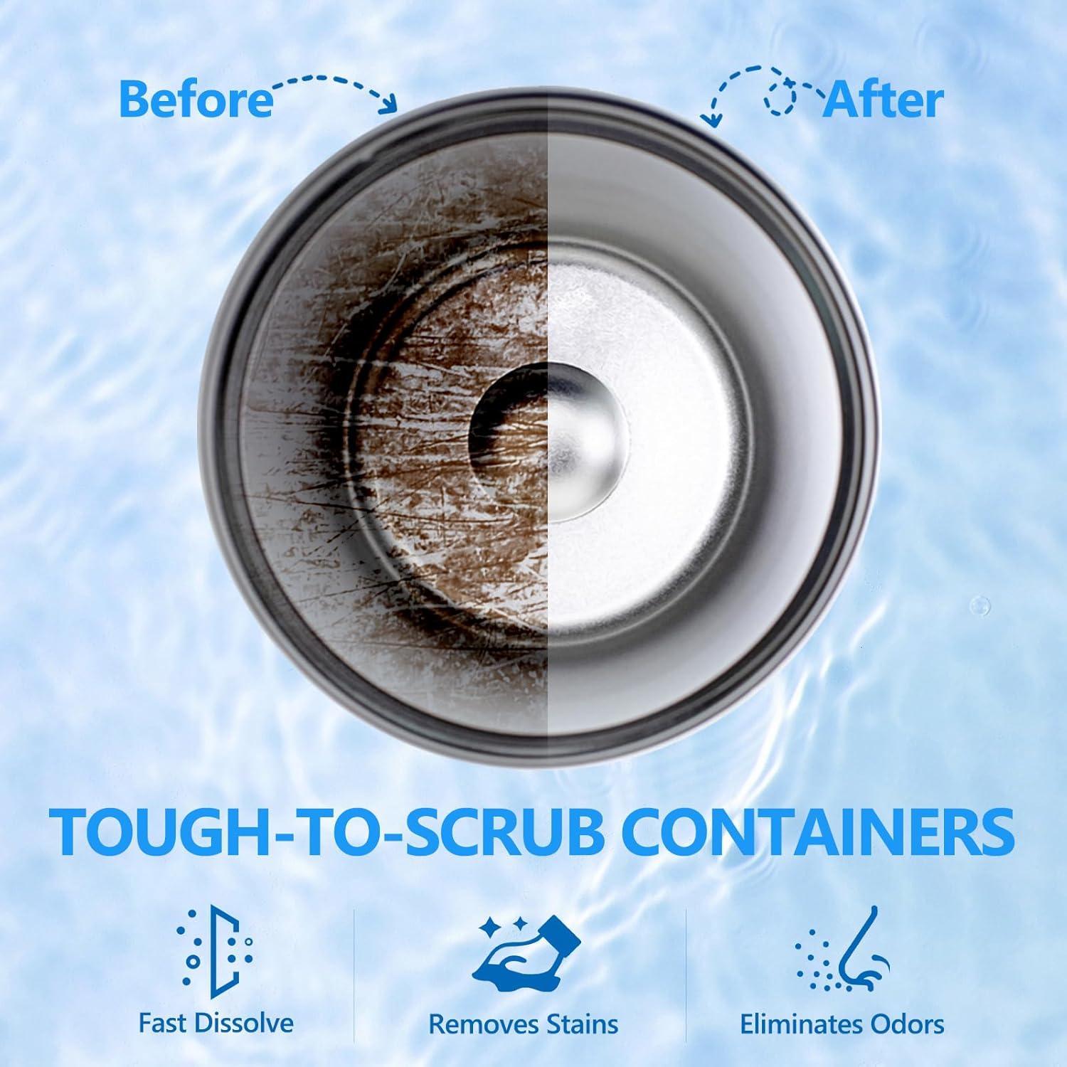 • Quick And Easy&No Scrubbing Required: The bottle clean tablet starts cleaning instantly after contact with water. Natural water bottle cleaning tablets can perfectly clean any stainless steel water bottle, coffee tumbler, glass water bottle, cup, water bladders, baby bottle, hard to clean plastic containers and more.