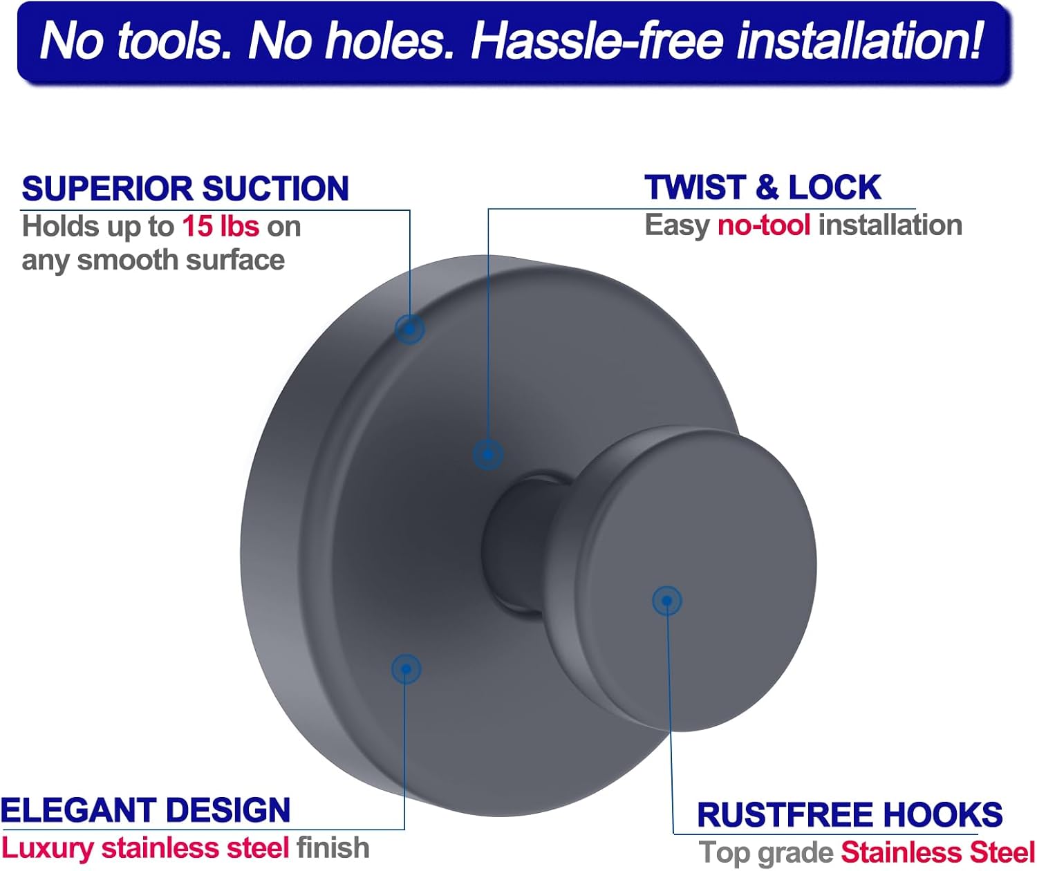 • [Functionality Meets Style]: With a super sticky silicone base and advanced vacuum suction technology, these hooks deliver strong, reliable support. Simply turn the knob clockwise to eliminate air and maximize suction power. Each hook can hold up to 15 lbs