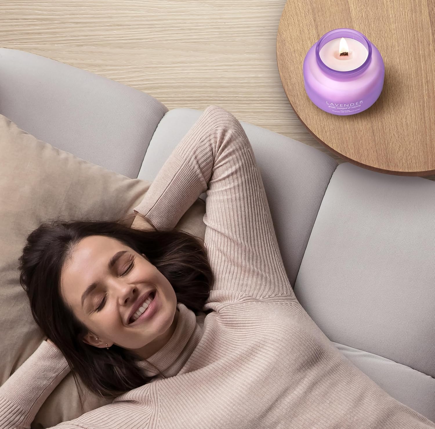 • ROMANTIC GIFTS FOR HER: These wooden wick candles are 5" wide and 4" tall. They are big candles, an impressive design with a solid purple frosted jar, elegantly packed - making them ideal luxury gifts / valentines candle