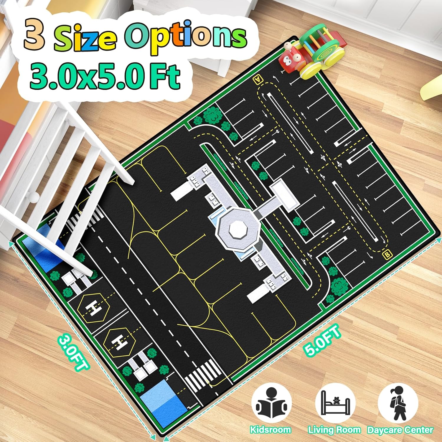 • [Machine Washable Kids Play Rug]This car rug for kids toy cars measures 3 x 5 feet/36*60 inches.0.4'' thick.Our mat is easy to clean by vacuum or machine.Perfect bedroom rug, living room rug, and playroom rug