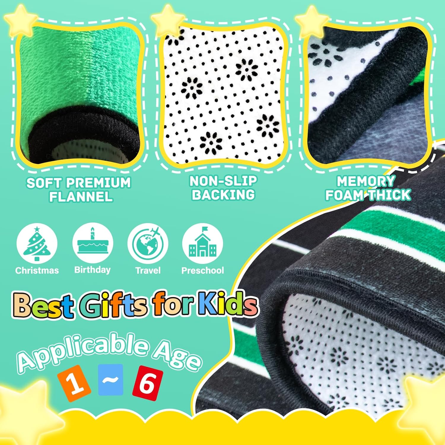 • [Ideal Gift Idea for Kids] Our independent kids playroom rug design team creates unique patterns.Each design is thoughtfully crafted.If you have any ideas or questions,we will provide excellent service.Our play mats for floor are the perfect choice for any celebration