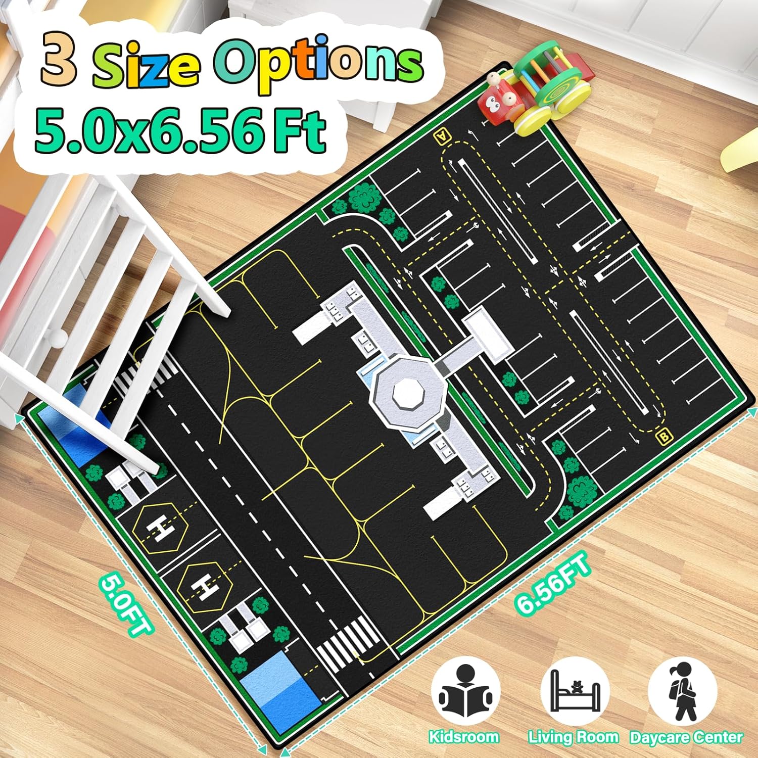 • [Machine Washable Kids Play Rug]This car rug for kids toy cars measures 5 x 7 feet/60*79 inches.0.4'' thick.Our mat is easy to clean by vacuum or machine.Perfect bedroom rug, living room rug, and playroom rug