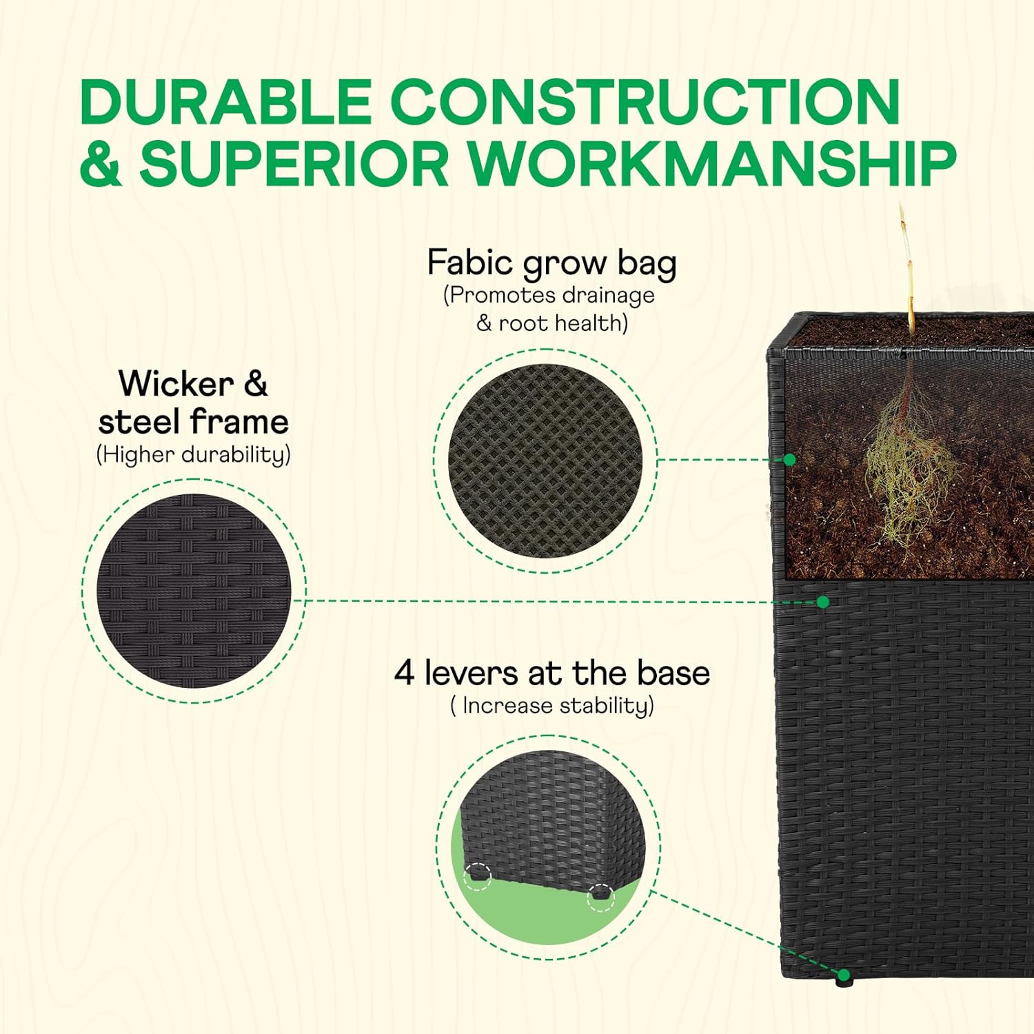 IDZO All Weather Wicker Planter Raised Garden Bed, 24 in Tall Round Rattan Flower Pots, Durable Self-Watering Indoor Outdoor Wicker Planters for Porch Patio Balcony