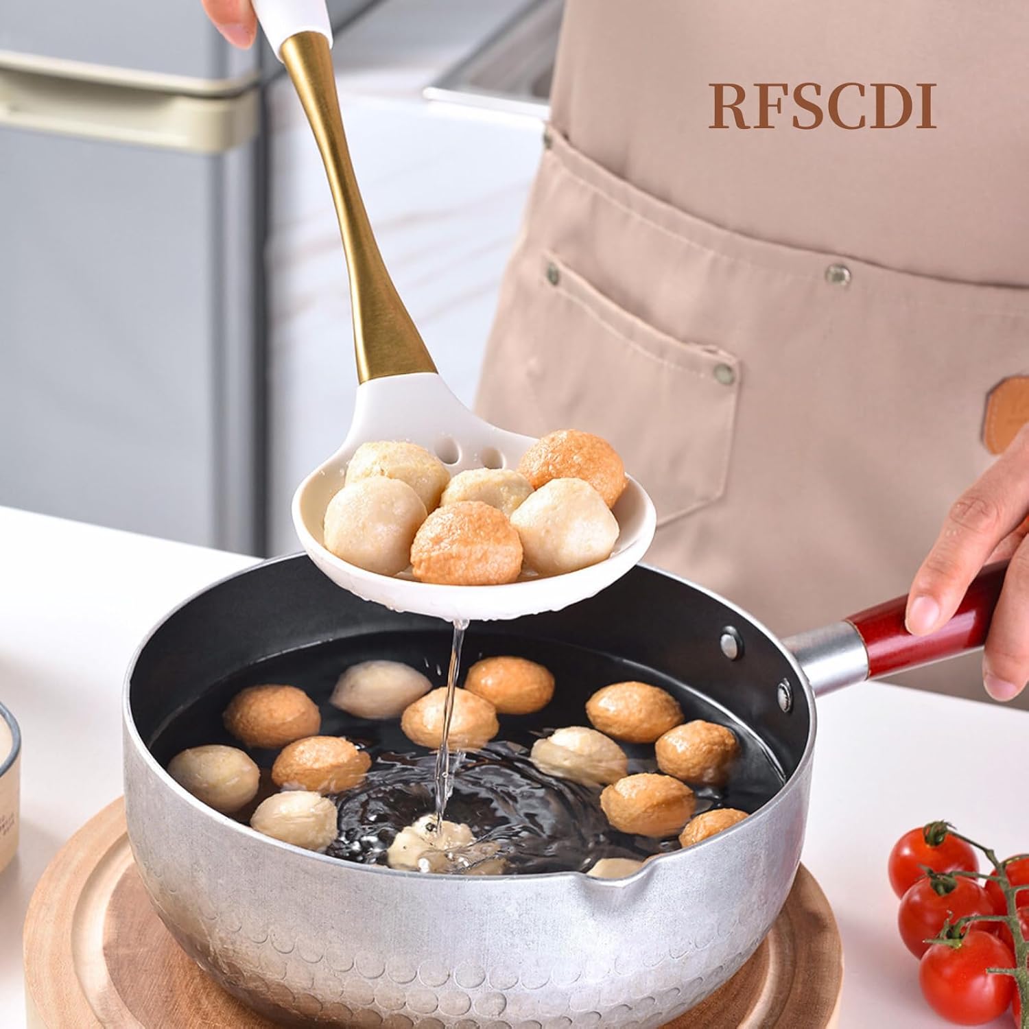 • ★【Chic and Elegant Design】: Featuring a stunning white and gold color scheme, complemented by Smoothly curved stainless steel handle, this set adds a touch of sophistication and style to your kitchen decor.