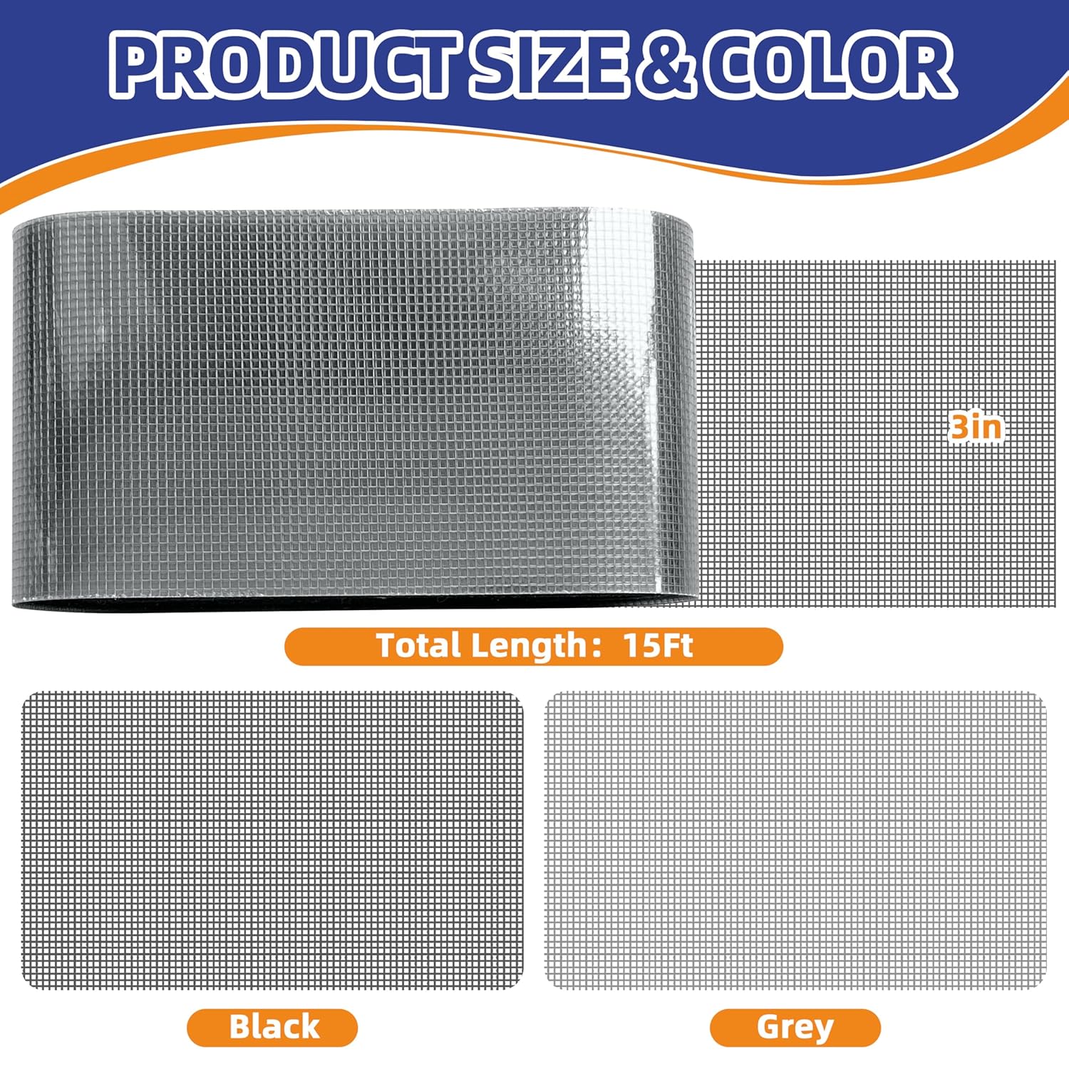 • 【 HIGH-QUALITY MATERIALS 】Our window screen repair tape is made with eco-friendly adhesive and high-quality fibers. Suitable for both indoor and outdoor use, in high or low temperatures. It can repair not only window screens but also screen doors, tents, pool screens, and other mesh tears or holes