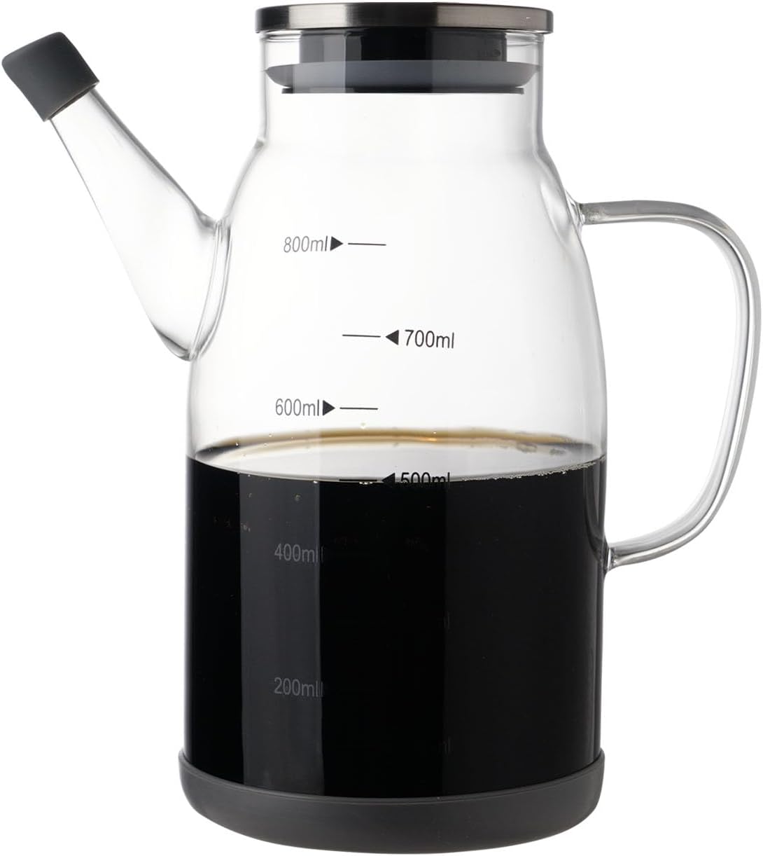 • 【Precisely display】Featured milliliters measurements mark on glass, easily monitor remaining oil and rightly controls oil use, which drastically reduces caloric intake and excess fat gain, make eating more heathier.