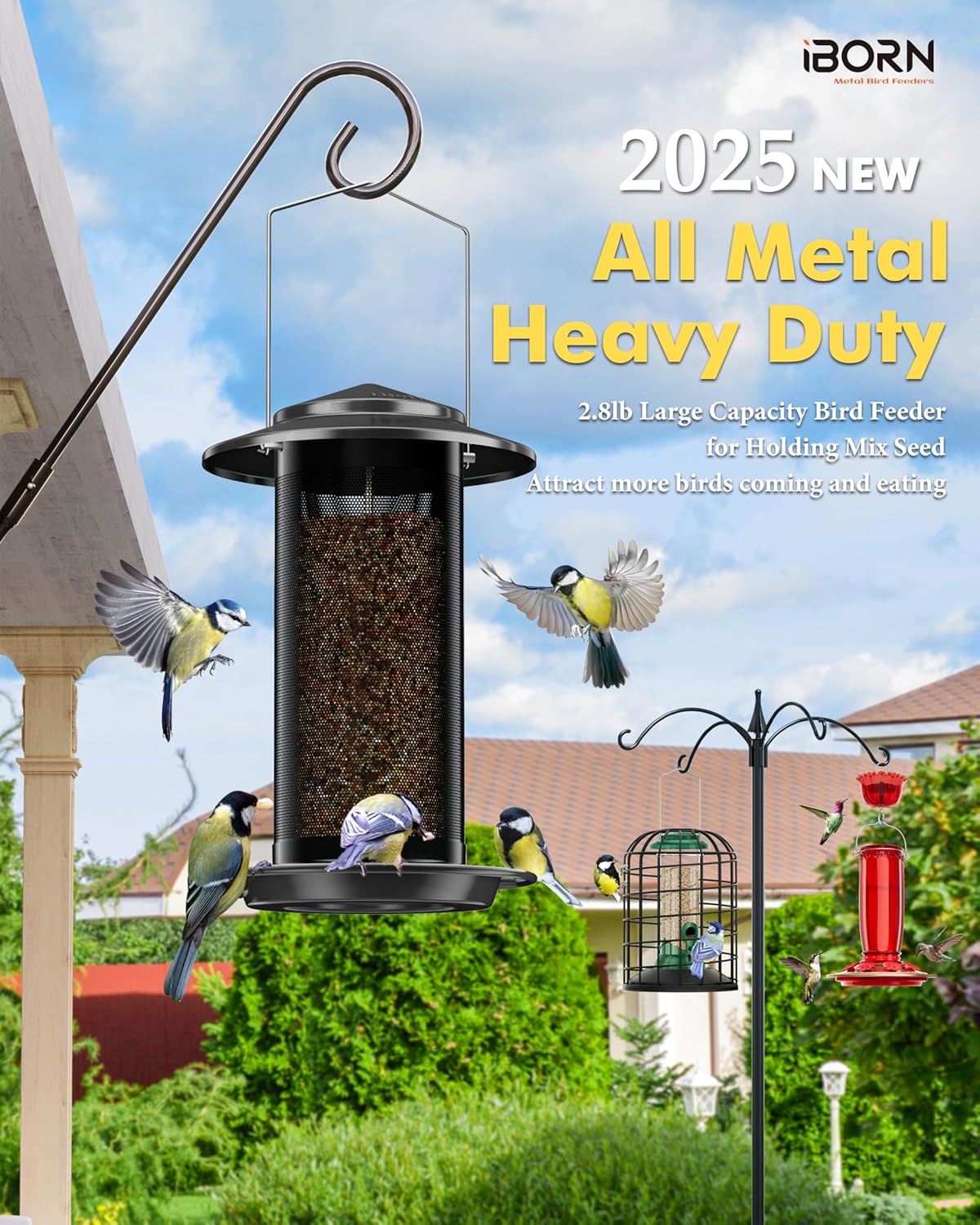 • 【Design For Outdoors Durable Use】iBorn Brings new Whole Metal Bird Feeders For Outdoors in 2025, aim to provide bird lovers with high-quality and durable using experience. Whole metal construction will make it stronger and heavy duty, not easy to get damage by weather or animals. No worry about being breaking or aging and becoming fragile easily, keep it for a longer time.