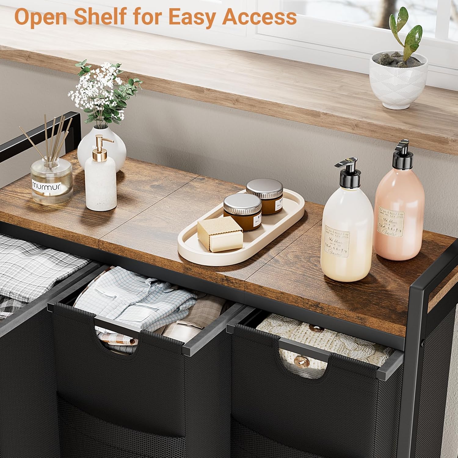 • Wide Tabletop Laundry Basket: This laundry hamper 3 section comes with a tabletop gives sufficient storage room to organize detergents or toiletries. This elevated design is also perfect for folding clothes and blankets, saving you from constant bending over.