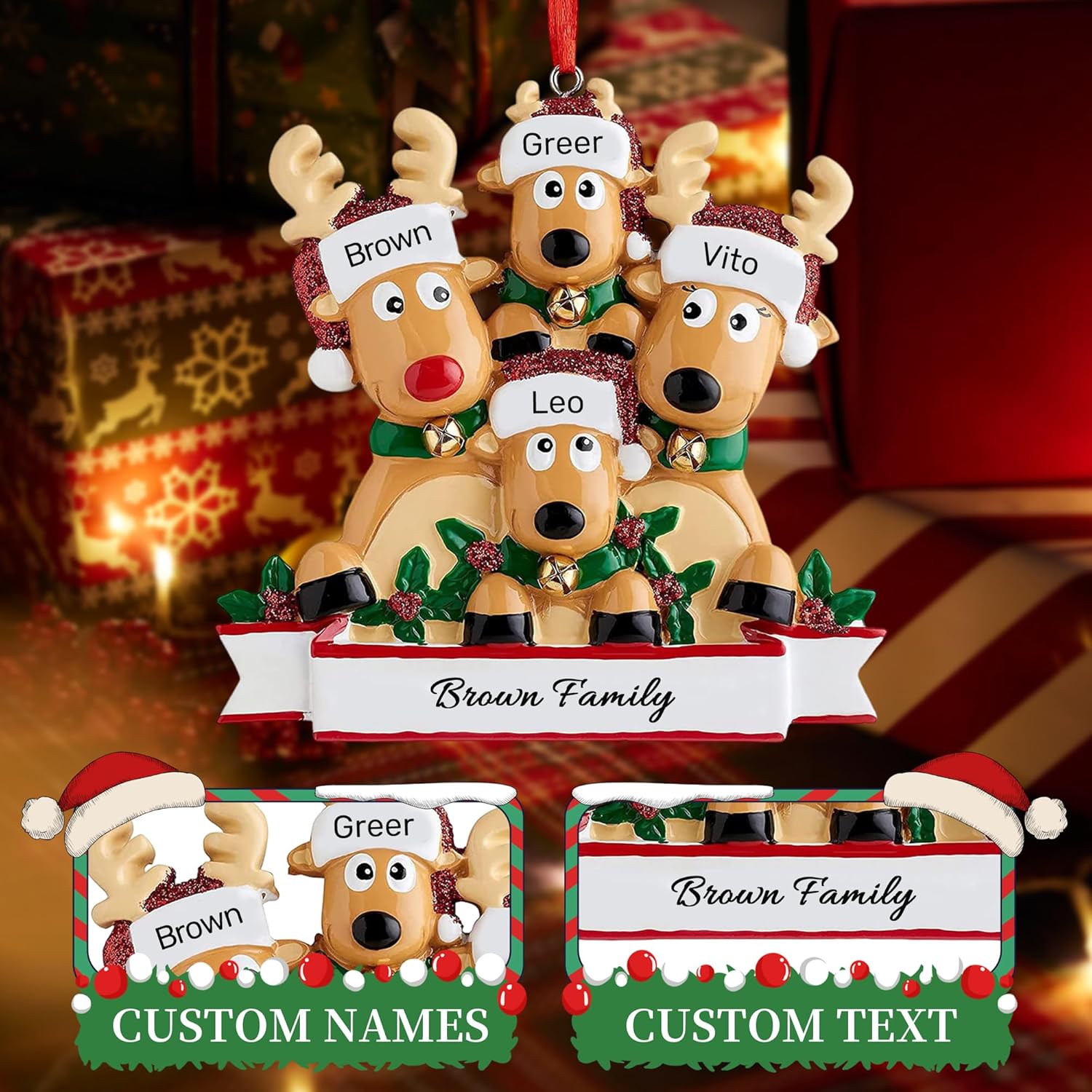 Personalized Christmas Ornaments 2025, Custom Reindeer Family Ornaments for Trees with Names, Handcrafted Christmas Deer Decorations for 2-8 Members, Meaningful Xmas Family of 4