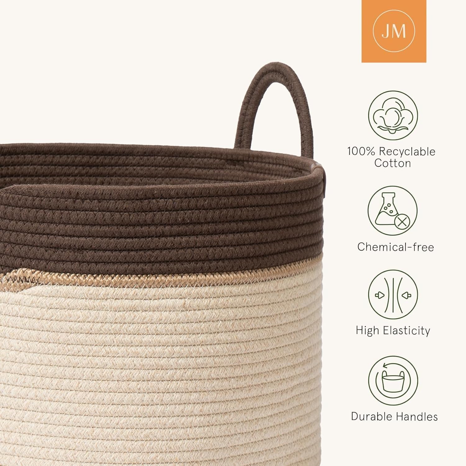 • COTTON ROPE LAUNDRY BASKET: Crafted with meticulous attention to detail, this laundry basket features premium GRS (Global Recycled Standard) certified braided cotton rope for enhanced durability and structural integrity. With its neutral color palette, this laundry basket brings a warming, welcoming touch to any room