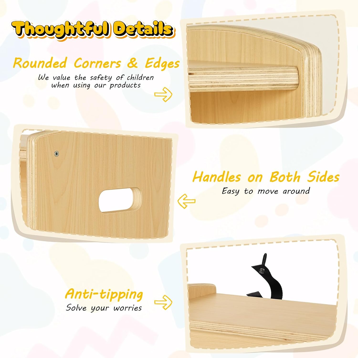 • Material: This ONBRILL toy organizers and storage shelf is made of 0.7" thick poplar wood, which is more sturdy and durable than other shelves made of wood chips in terms of structure, it can be used for many years. It is also easy to clean and not easily scratched, simply wipe the stain gently with a damp towel