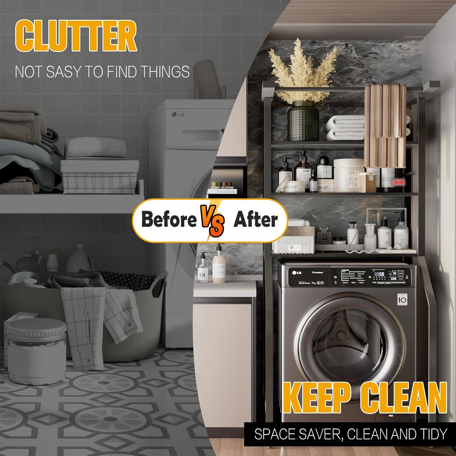 • Durable All-Steel Construction for Superior Stability: This over the washer and dryer storage shelf is made from tough, all-steel materials with extra-thick pipes for excellent stability and durability. Each shelf holds up to 70 lbs, making it perfect for storing heavy items like laundry detergent and baskets without any wobbling.