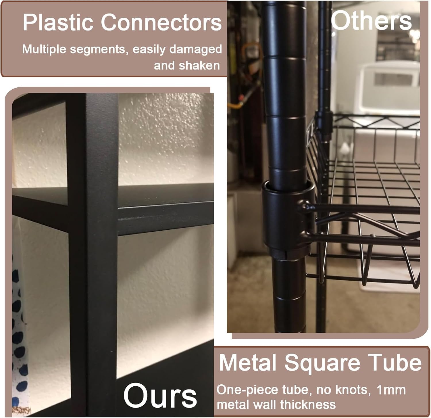 • Enhanced Stability with Adjustable Feet: The shelf includes adjustable rubber feet that help stabilize it on uneven floors. Additionally, the back of the unit comes with four nails to securely mount the shelf to the wall, providing extra stability and safety.