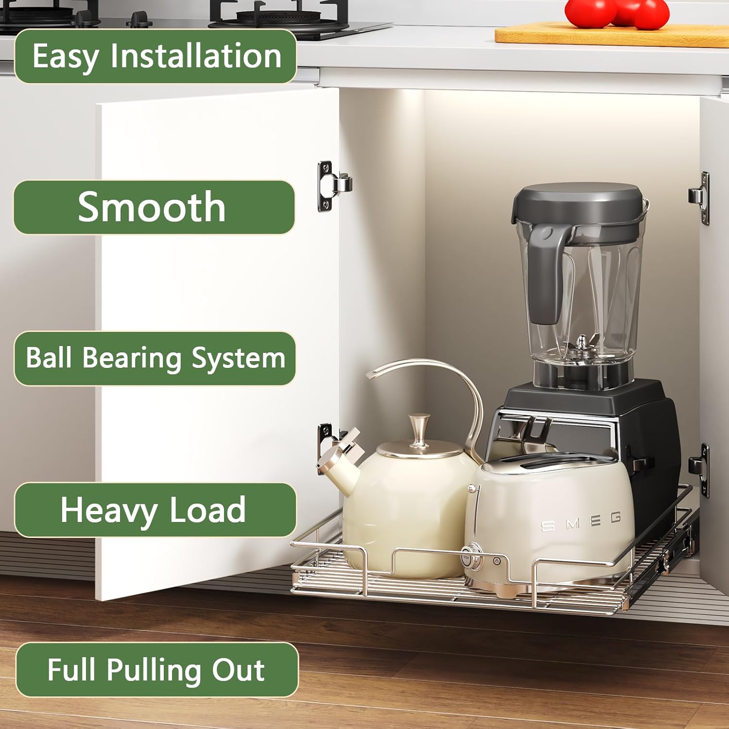 • 【Efficient Kitchen Organizer】Features a full-extension ball-bearing system which slides smoothly; Durable and strong organizer that can hold up to 50-pounds of weight.