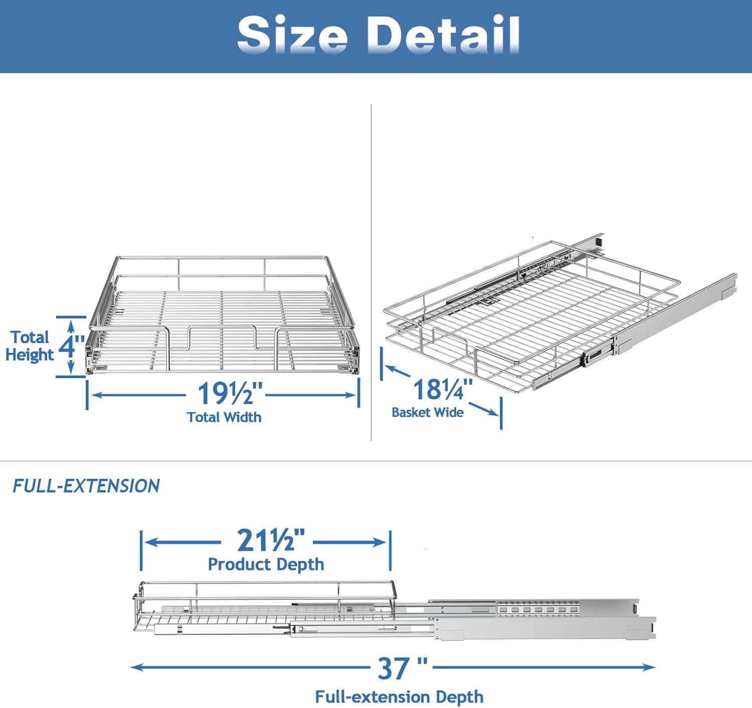 Pull Out Cabinet Organizer 19½" W x 21½" D, Heavy Duty Cabinet Pull Out Shelves, Slide Out Drawers Organization for Kitchen Cabinets Bathroom