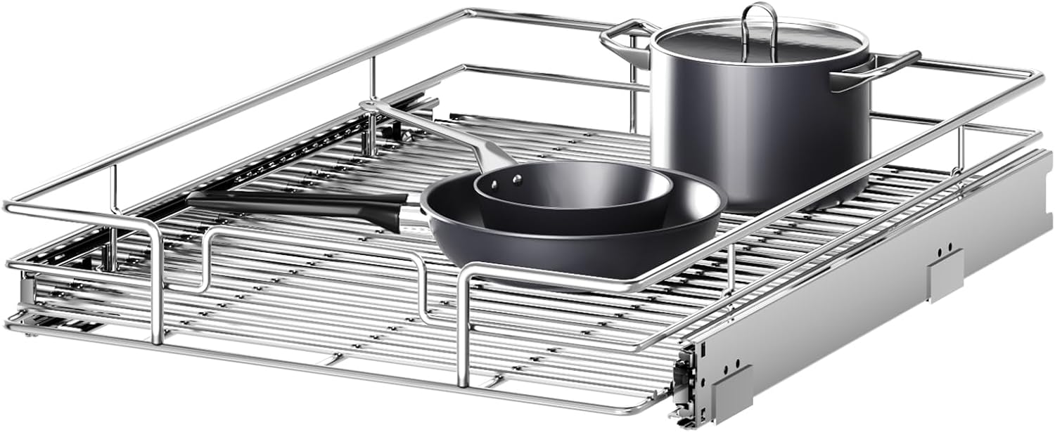 • 【Efficient Kitchen Organizer】Features a full-extension ball-bearing system which slides smoothly; Durable and strong organizer that can hold up to 50-pounds of weight.
