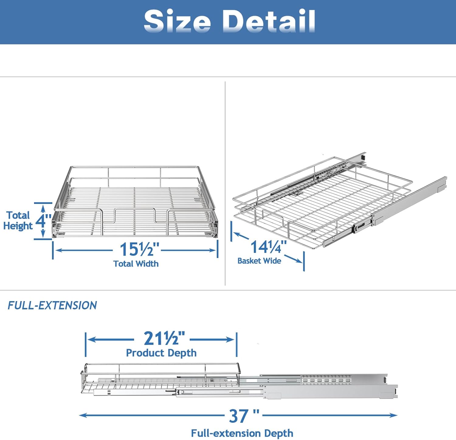Pull Out Cabinet Organizer 15½" W x 21½" D, Heavy Duty Cabinet Pull Out Shelves, Slide Out Drawers Organization for Kitchen Cabinets Bathroom