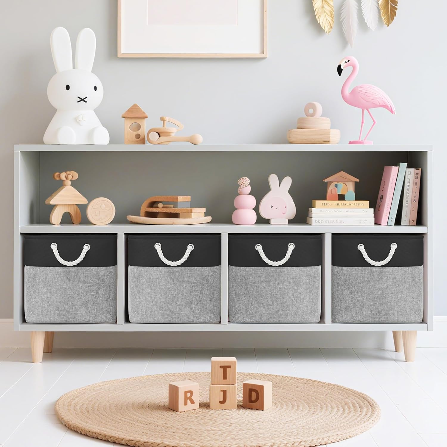 13x13 Inch Cube Storage Bins with Reinforced Bottom Cardboard, 6 Pack Large Collapsible Fabric Storage Cubes with Handles for Shelf, Closet, Toy, Laundry Organization (Black&Gray)