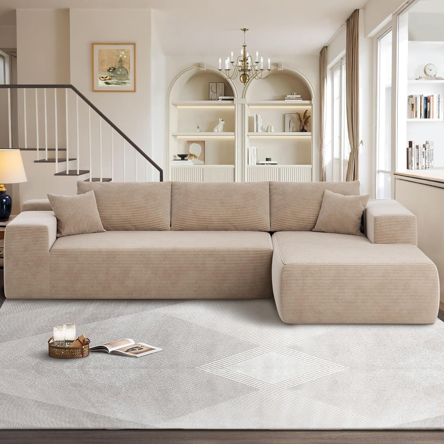 • Comfy Chaise Couch: Sink into pure luxury with our sofa collection. It’s like sitting on a cloud! Our boneless couch with a 57” lounge chaise is seriously comfy. It’s built with high-resilience memory foam and reinforced with coil springs – pure bliss