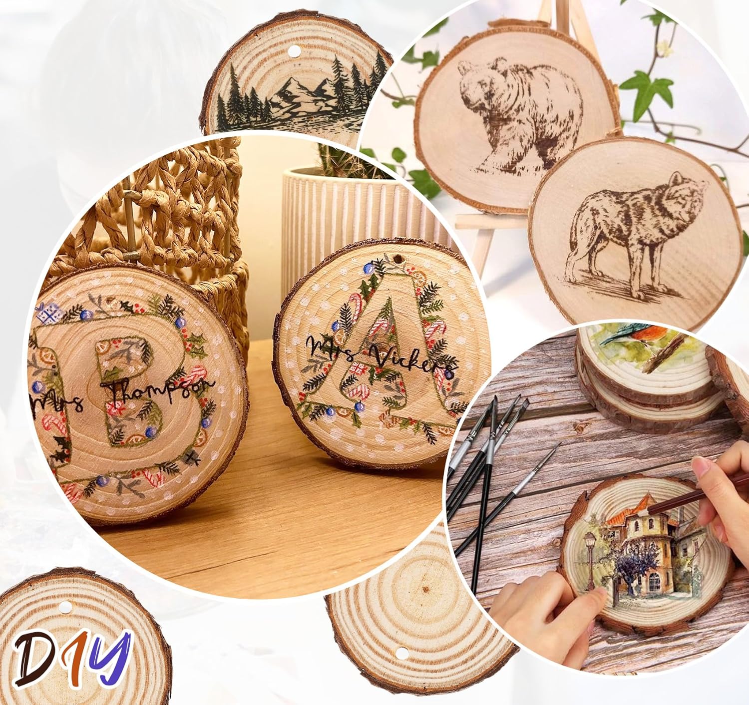 • [High-Quality Material] wood slicesCrafted from premium pine wood, our wood slices are meticulously sanded and polished to ensure a smooth surface that won't harm your hands. unfinished wood crafts are easy to write on, decorate, or carve, making them ideal for adults, children or beginners exploring their creative side.