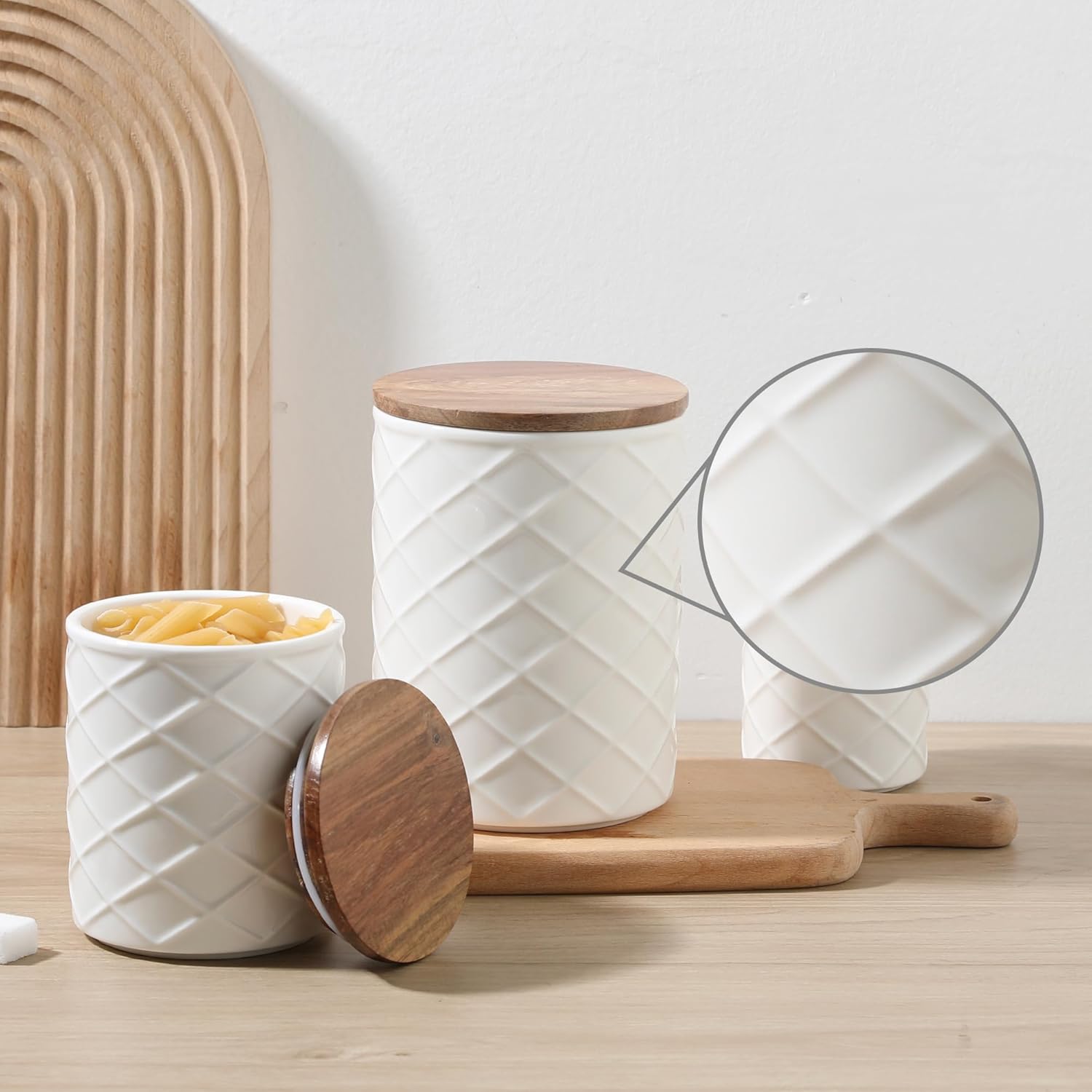 • MULTIPLE FUNCTION - The canisters not only for food storage, at same time for exquisite desktop decoration, the jar container can be used as vase, baking containers storage set, utensil...So this ceramic canisters with lids also super practical gift in the housewarming, birthday, wedding, Christmas, Anniversary...