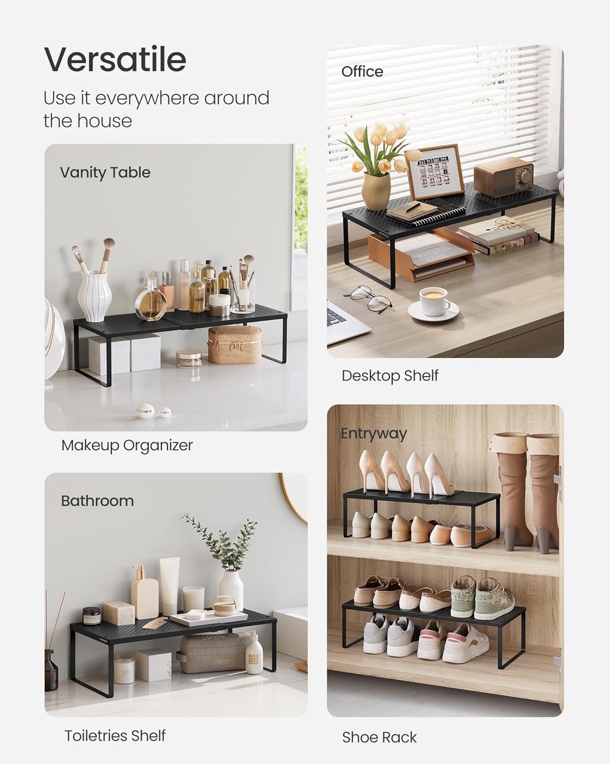 • 【VERSATILE】Place this cupboard shelf in kitchen cabinets or on countertops to store kitchen utensils, in the study to house office utensils and decorations, or in the entryway to keep your shoes off the floor