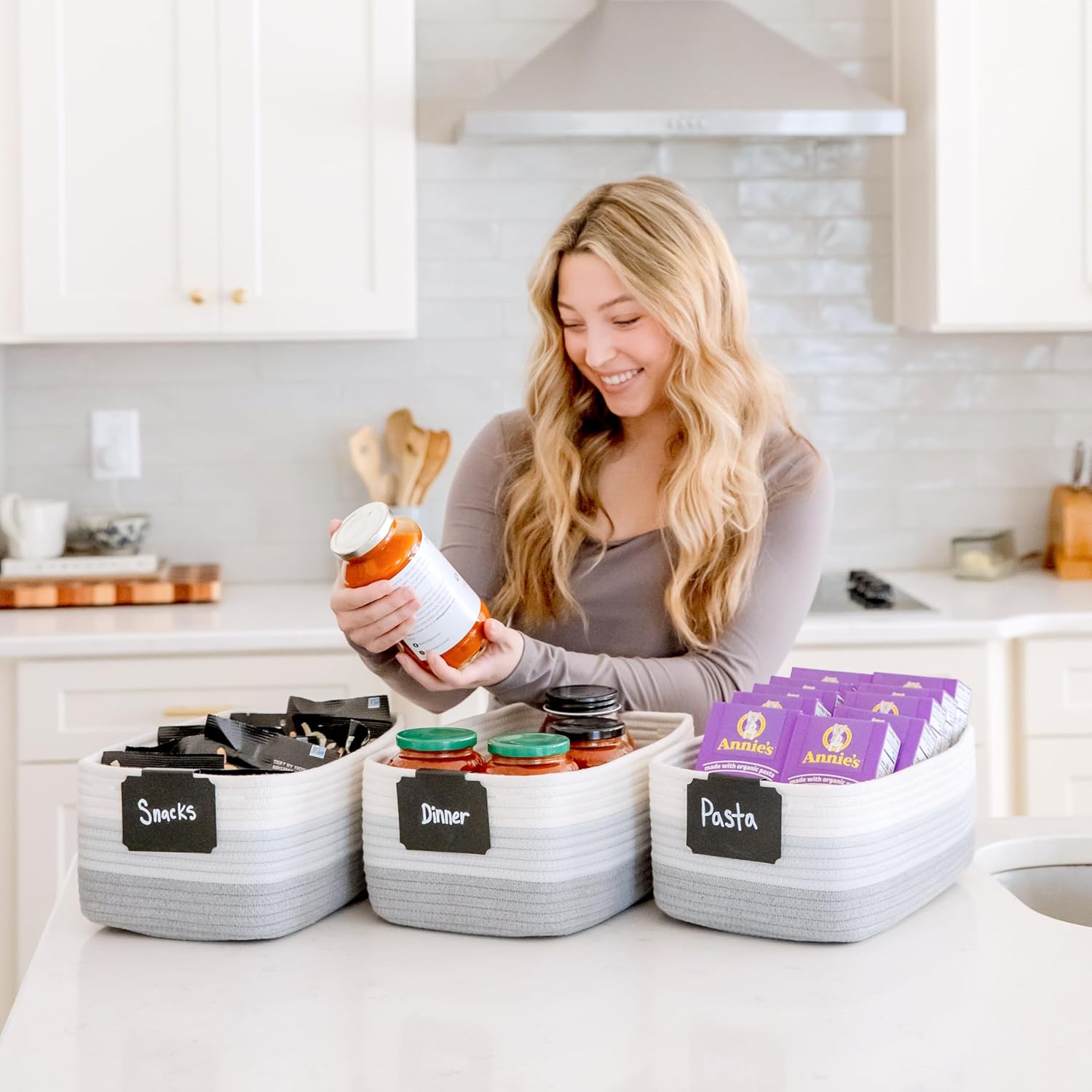• Safe, Natural Cotton Organizer Bins: Crafted from the highest quality material in the market, our storage bins are oh-so-sturdy (and cute) and ready to take on little humans. They’re 100% safe, so you can rest easy if teething toddlers take a nibble. Reinforced Hidden Handles: Now you see ‘em, now you don’t! With completely hidden handles that blend seamlessly into the rope basket, you’ll be the Houdini of home organizing. They’re even double-stitched and reinforced for extra heavy loads!