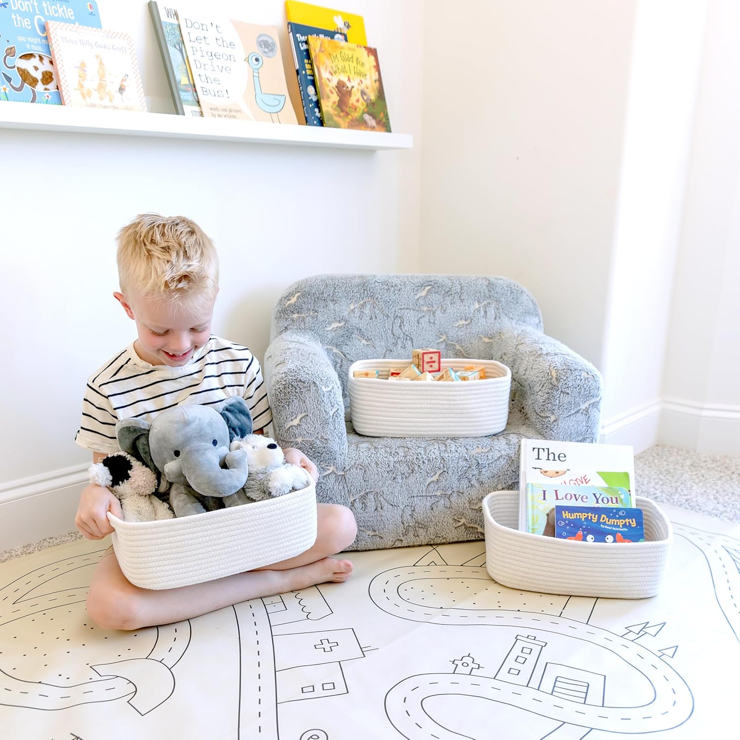 • Safe, Natural Cotton Organizer Bins: Crafted from the highest quality material in the market, our storage bins are oh-so-sturdy (and cute) and ready to take on little humans. They’re 100% safe, so you can rest easy if teething toddlers take a nibble. Reinforced Hidden Handles: Now you see ‘em, now you don’t! With completely hidden handles that blend seamlessly into the rope basket, you’ll be the Houdini of home organizing. They’re even double-stitched and reinforced for extra heavy loads!