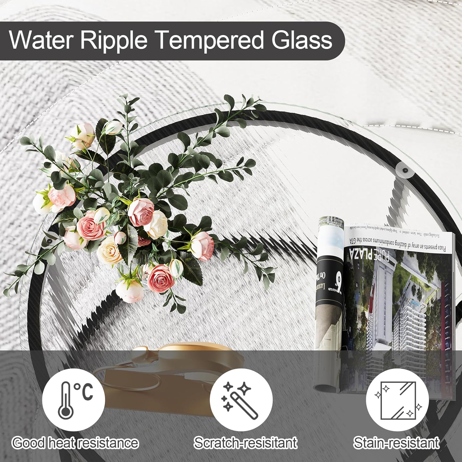• ✔BEAUTY & STURDY:The surface of the glass table has a unique texture,adding a stylish vibe to the living room.Its simple, smooth line design and glass material complement each other, and can be easily integrated into a variety of modern decoration styles.