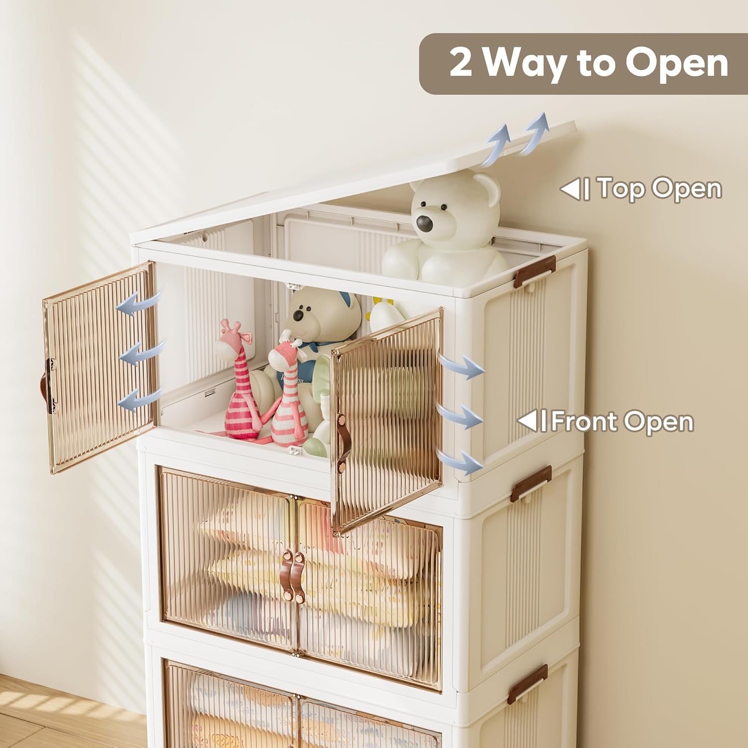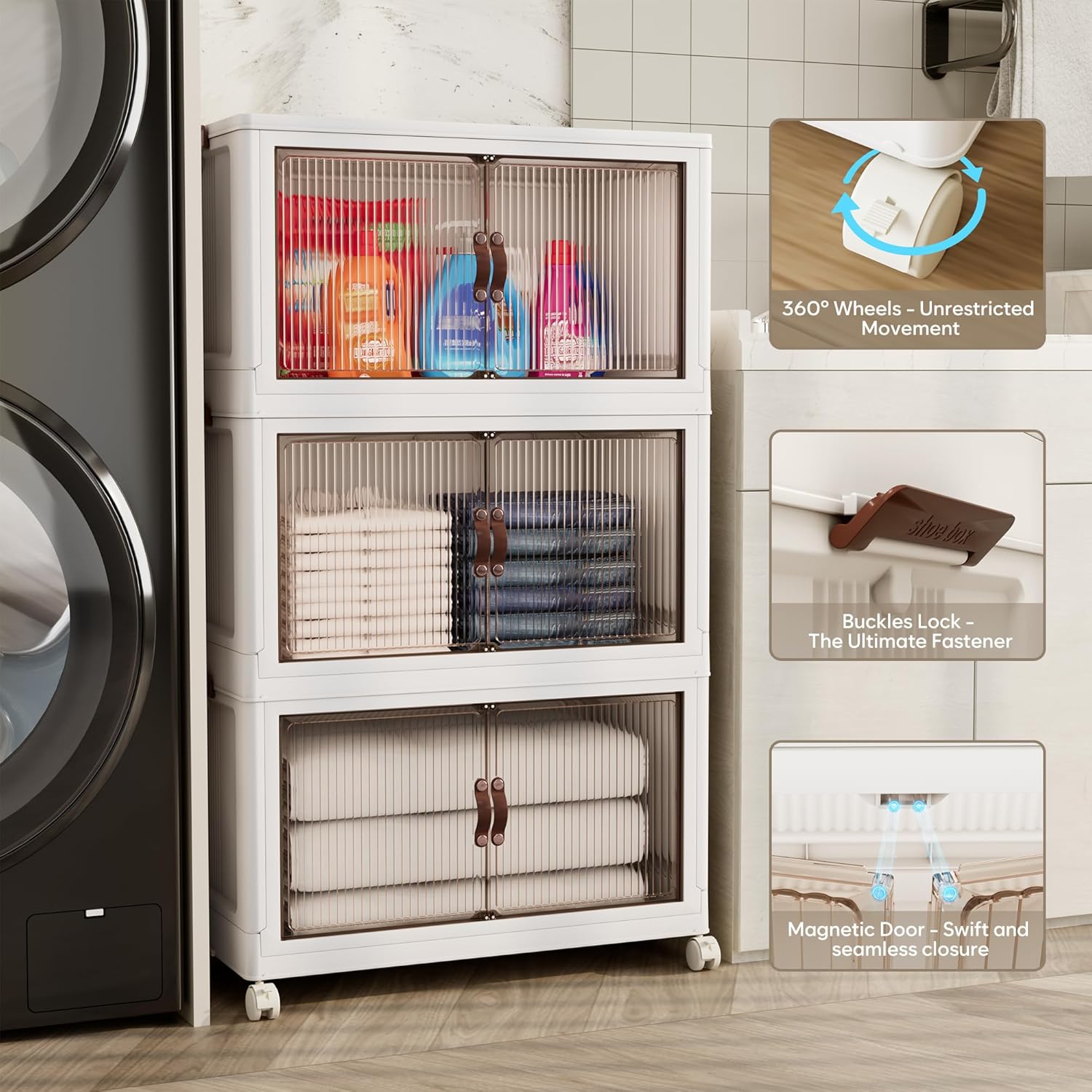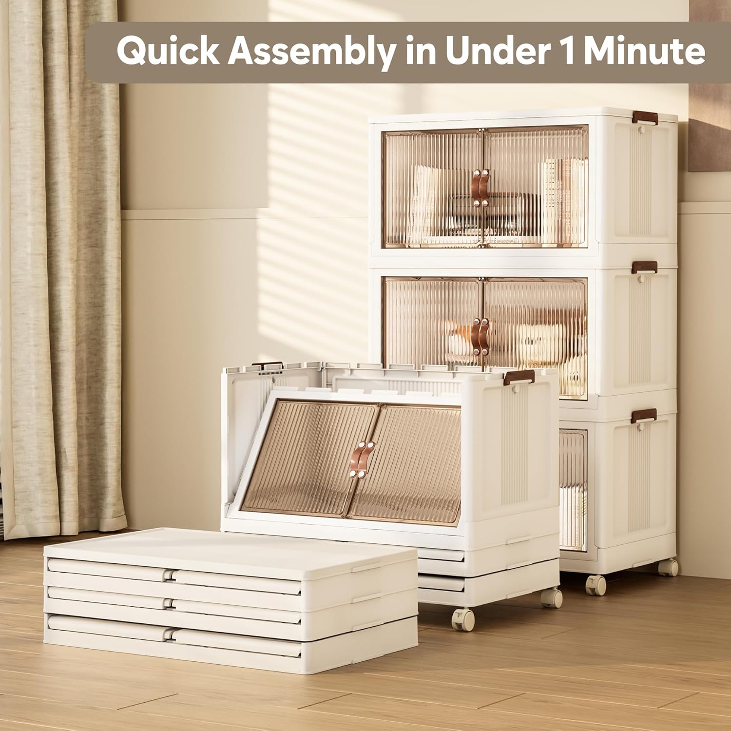 • 【Magnetic Doors & Rotating Wheels】The bins offer two opening options: front or top. The magnetic closure allows easy access. The 4 rotating 360-degree wheels make them easy to move, ideal for use in storage containers and closet organization in any room like your closet or bathroom.