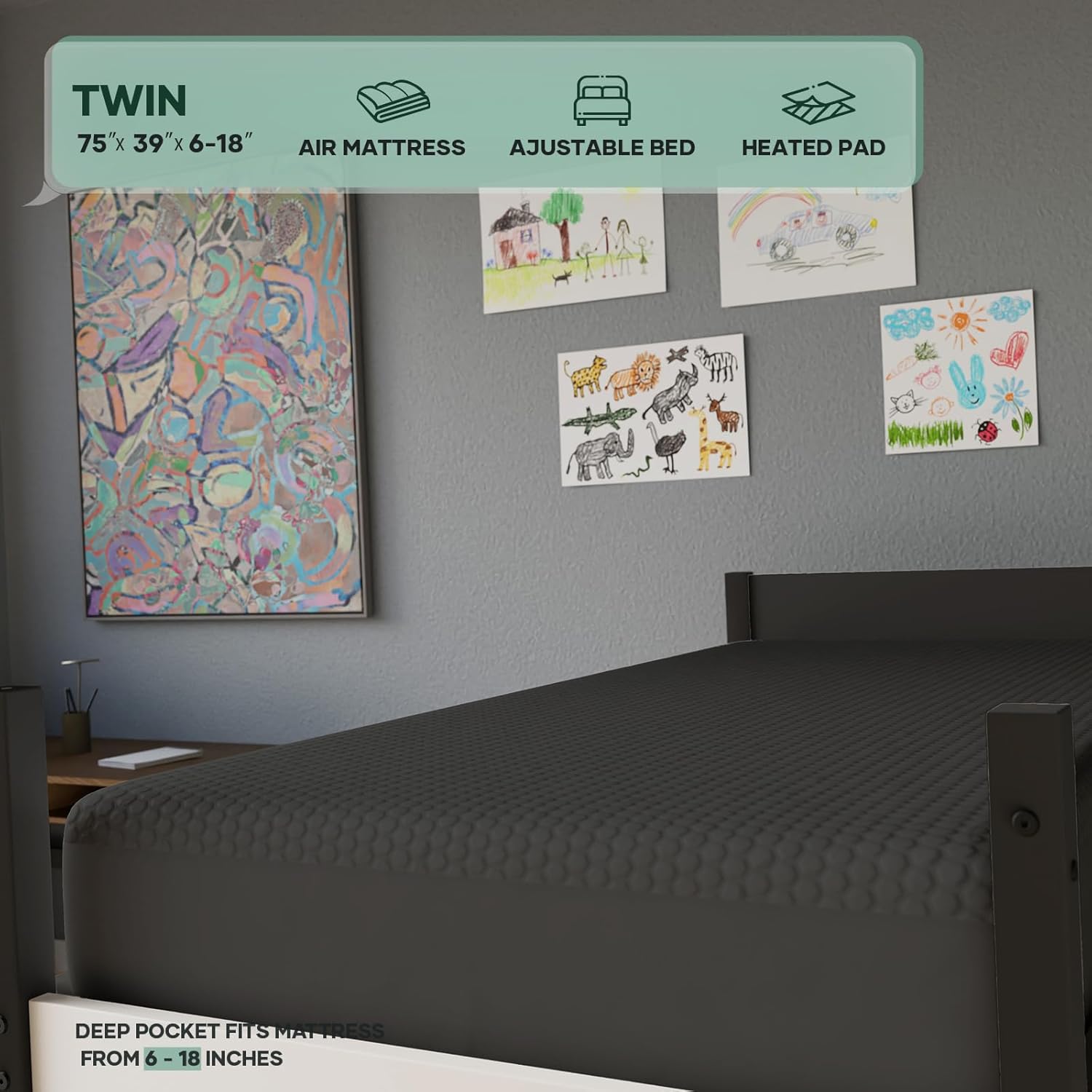 • 【Deep Pocket Design with 360° Elastic Edges】: Fits 6"-20" mattresses (Twin 75" x 39") with elastic edges that hug tightly like a second skin, adapting to any mattress type. Unlike ordinary covers that wrinkle and rustle, our durable bands stay securely in place—blocking crinkling sounds while delivering silent, peaceful comfort throughout the night.