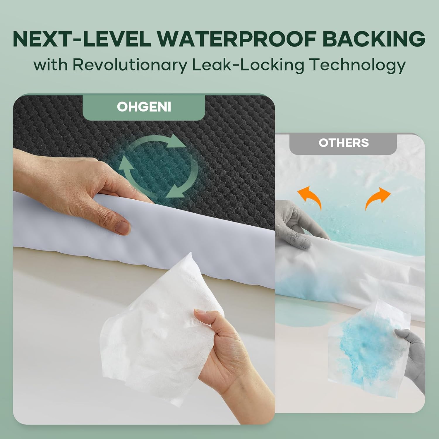 OhGeni 100% Waterproof Mattress Protector, King-Gray Size Mattress Pad, Fits 6"-20" Mattresses with Deep Pocket, Cooling, Breathable Fitted Sheets, Soft Bed Cover, Noiseless, Machine Washable