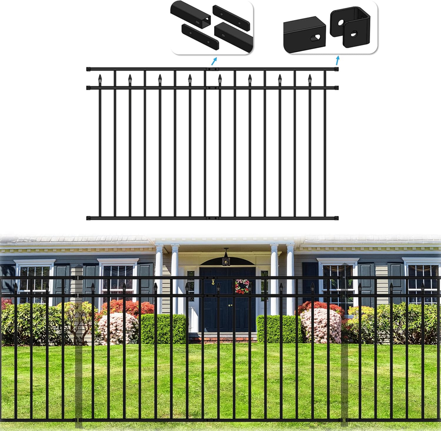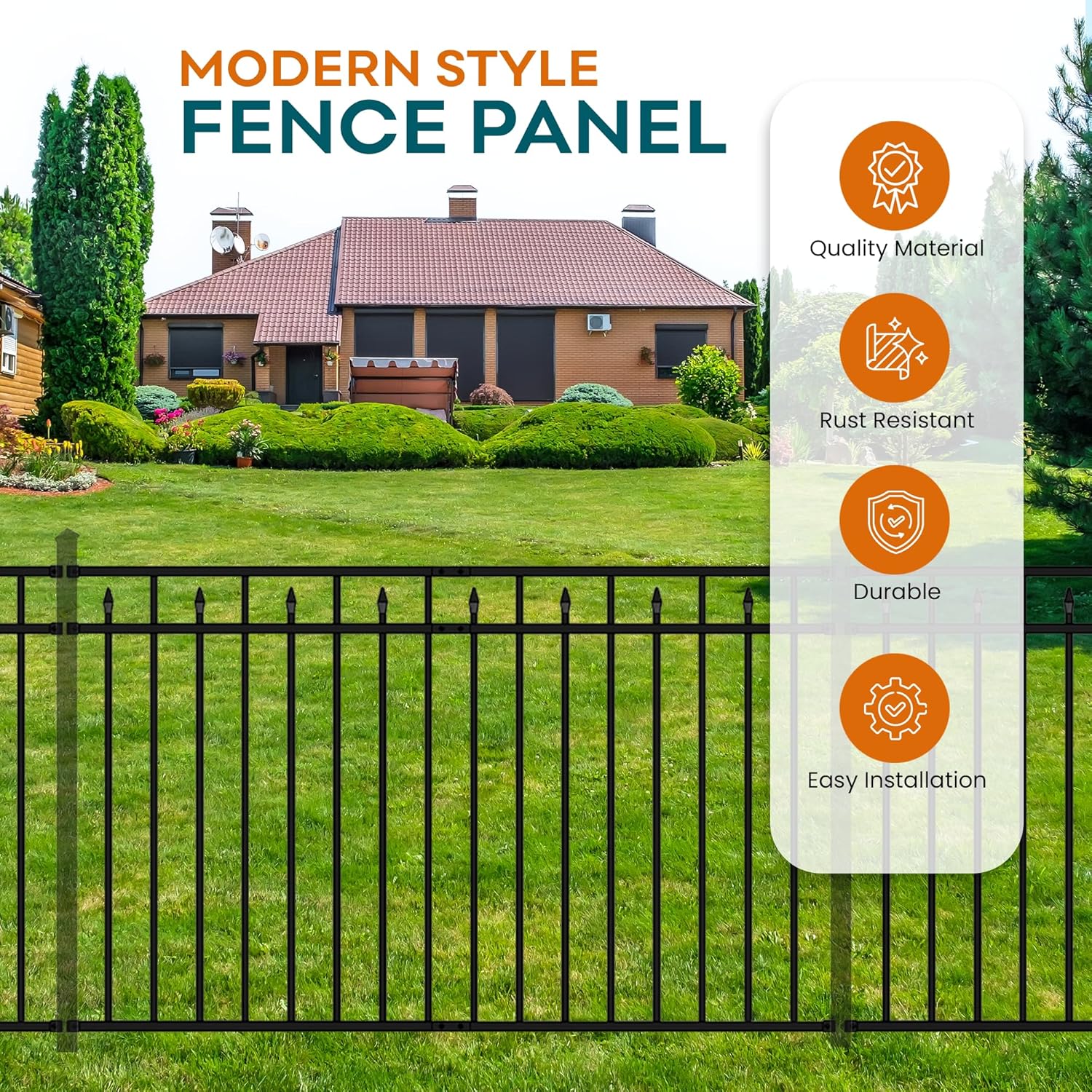 Heavy-Duty Black Metal Fence Panel, 6.5' W x 4' H, Pre-Fab Wrought Iron, Rust-Resistant, Easy to Install DIY Decorative Outdoor Fencing for Yard & Garden (Posts Sold Separately)