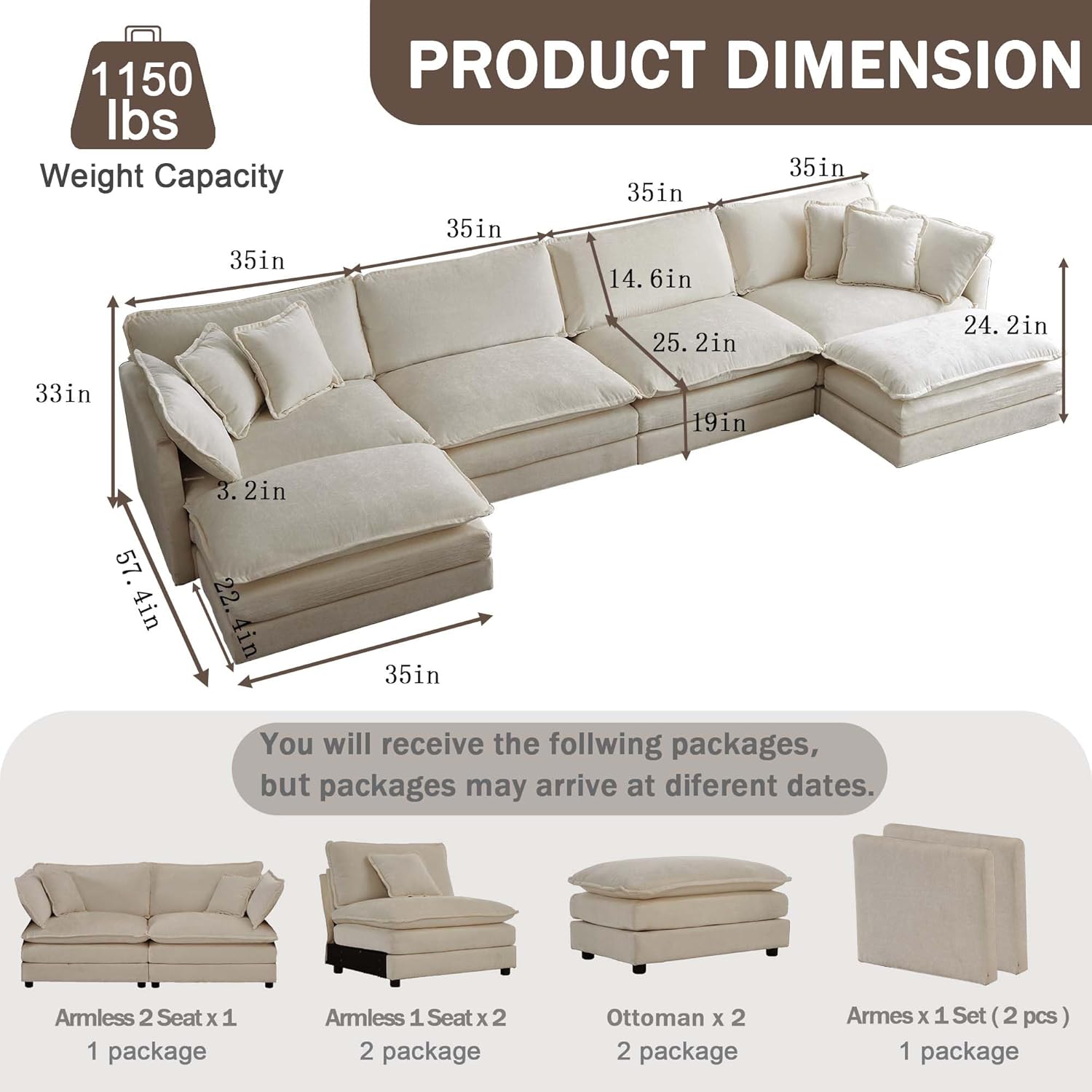 • Premium Comfort & Customizable Sizing: Available in 146.5" U-Shape, 146.5" L-Shape, 111.5" U-Shape, 111.5" L-Shape, and 76.7" L-Shape, this modular sectional sofa adapts to any room size. Featuring ultra-plush 3-layer chenille cushions with high-resiliency foam, it offers cloud-like softness whether lounging, sitting, or napping. Perfect for living rooms, apartments, offices, or dorms.