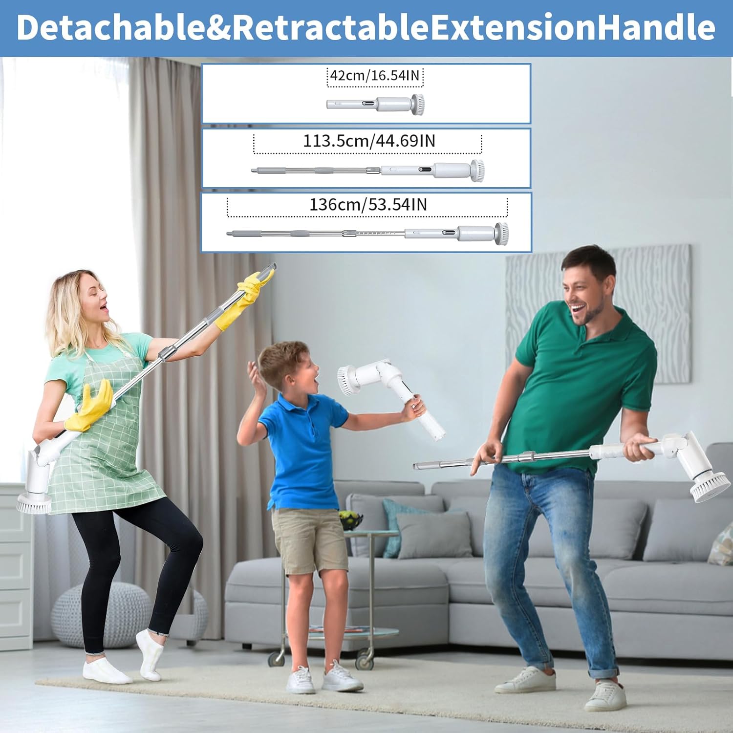 • Ergonomic & Adjustable for Comfort: The 16.5 to 55.1-inch adjustable long handle allows for comfortable cleaning without bending or kneeling. The IPX7 waterproof rating ensures safety and effectiveness in wet environments, such as bathrooms and showers.
