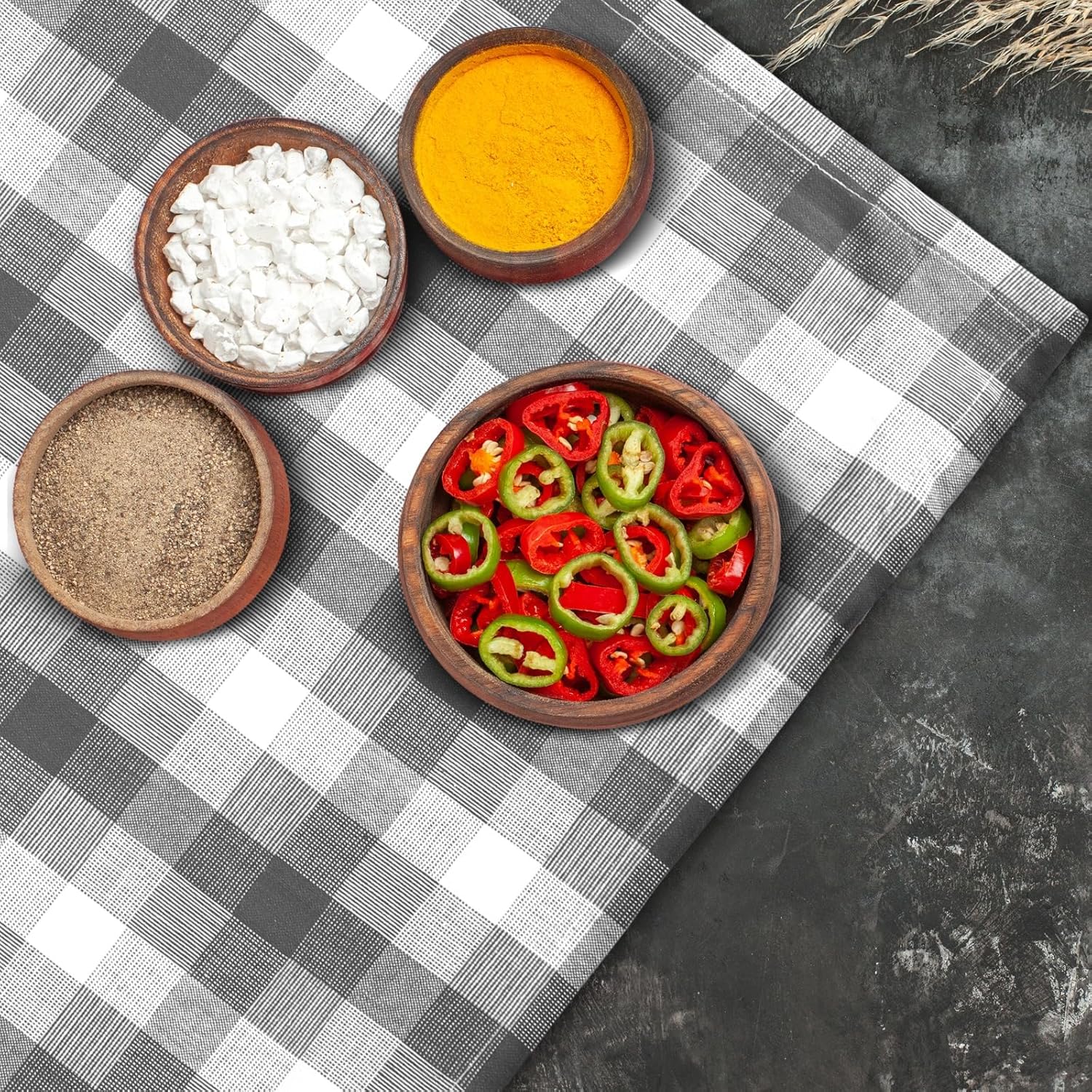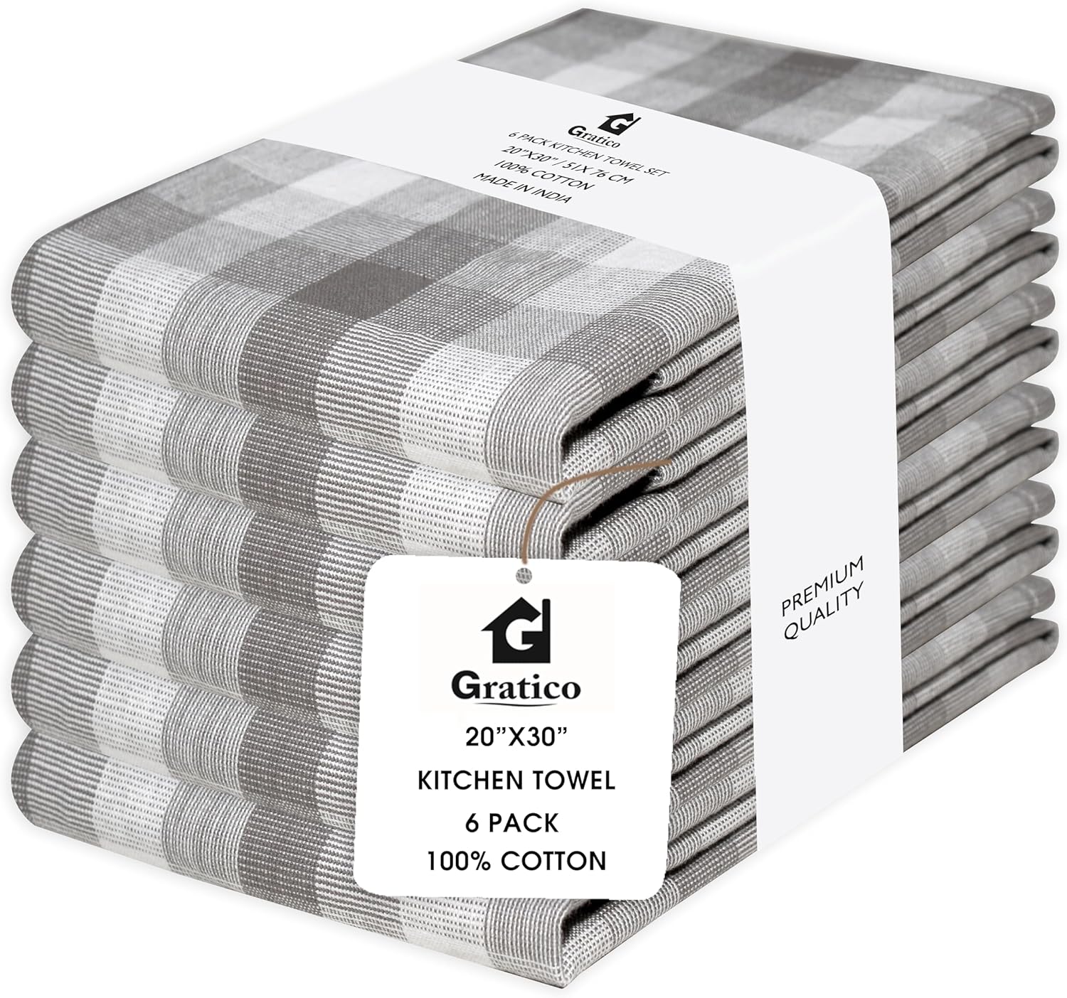 Kitchen Towels Set of 6 Grey/White Checks 20x30 Inches 100% Cotton Highly Absorbent Kitchen Towels