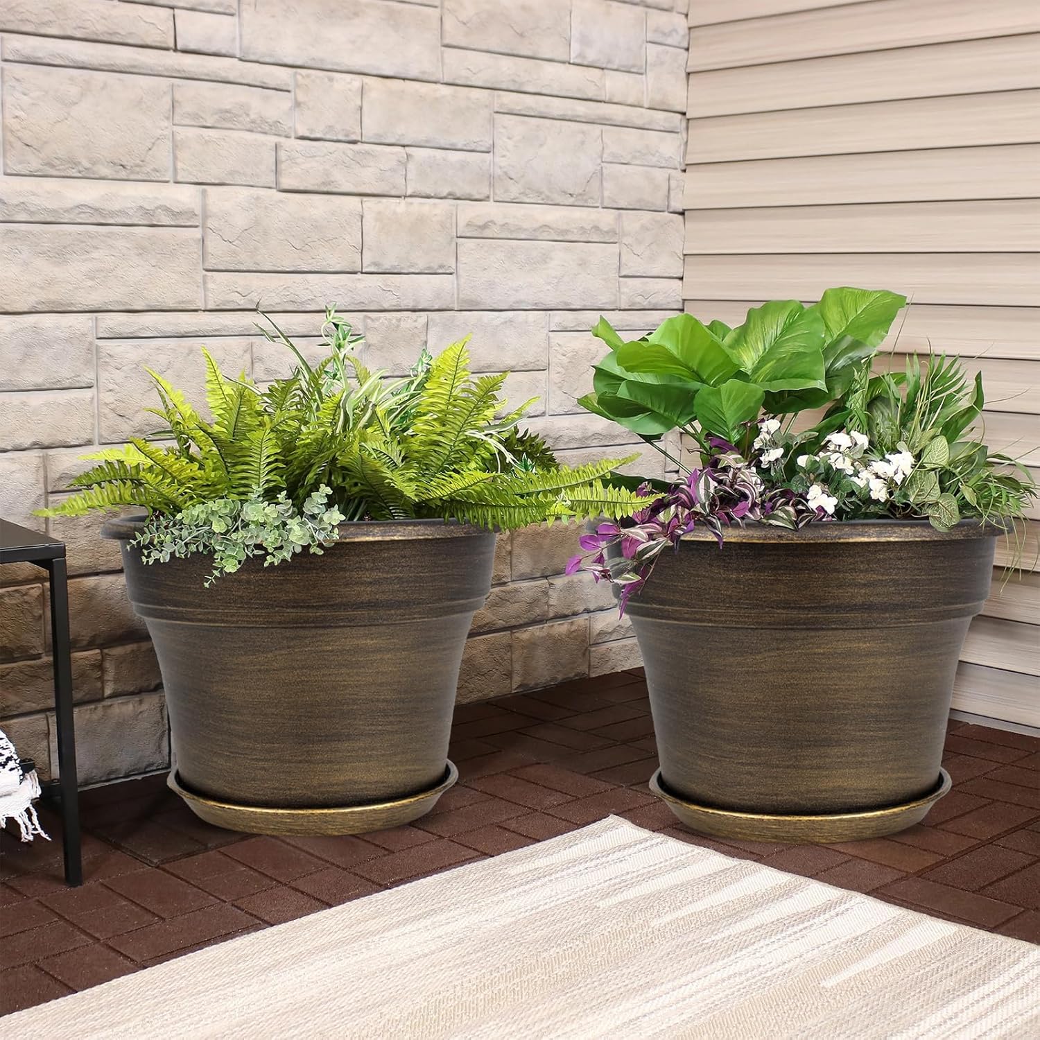 • 【TRADITIONAL DESIGN】Plastic planters for indoor plants with trays are designed in dark gold colors & a classic round look, which allow this pot to fit into any indoor & outdoor setting. With these golded flower pots, it could adds fresh, decorative flair to your home. Decorate your windowsill, desktop, shelf, bedroom, living room, kitchen, garden, office with our 10 inch plastic plant pot.