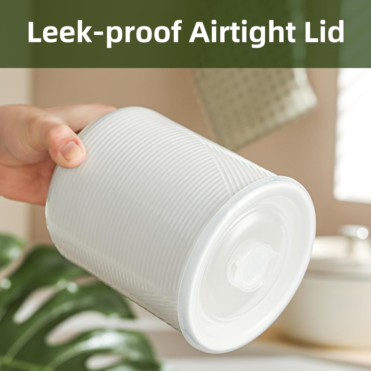• 【Easy to Use 】Features PP airtight lids with silicone sealing rings that won't deform with long-term use and open/close effortlessly. Classic striped texture provides anti-slip functionality. Both jars and lids are dishwasher safe