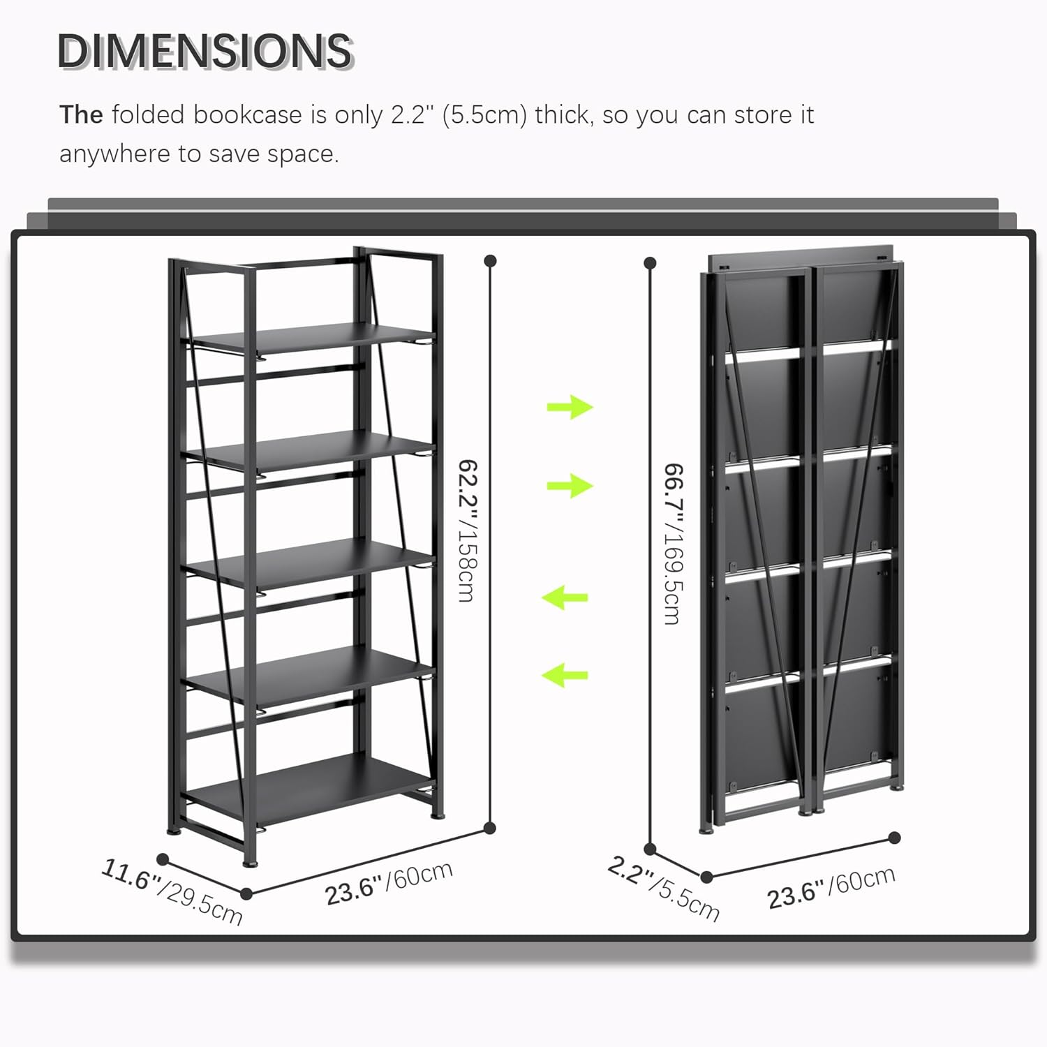 • 【Storage shelf folding sized】23.62x2.2x66.7 inches (60x5.5x169.5cm).