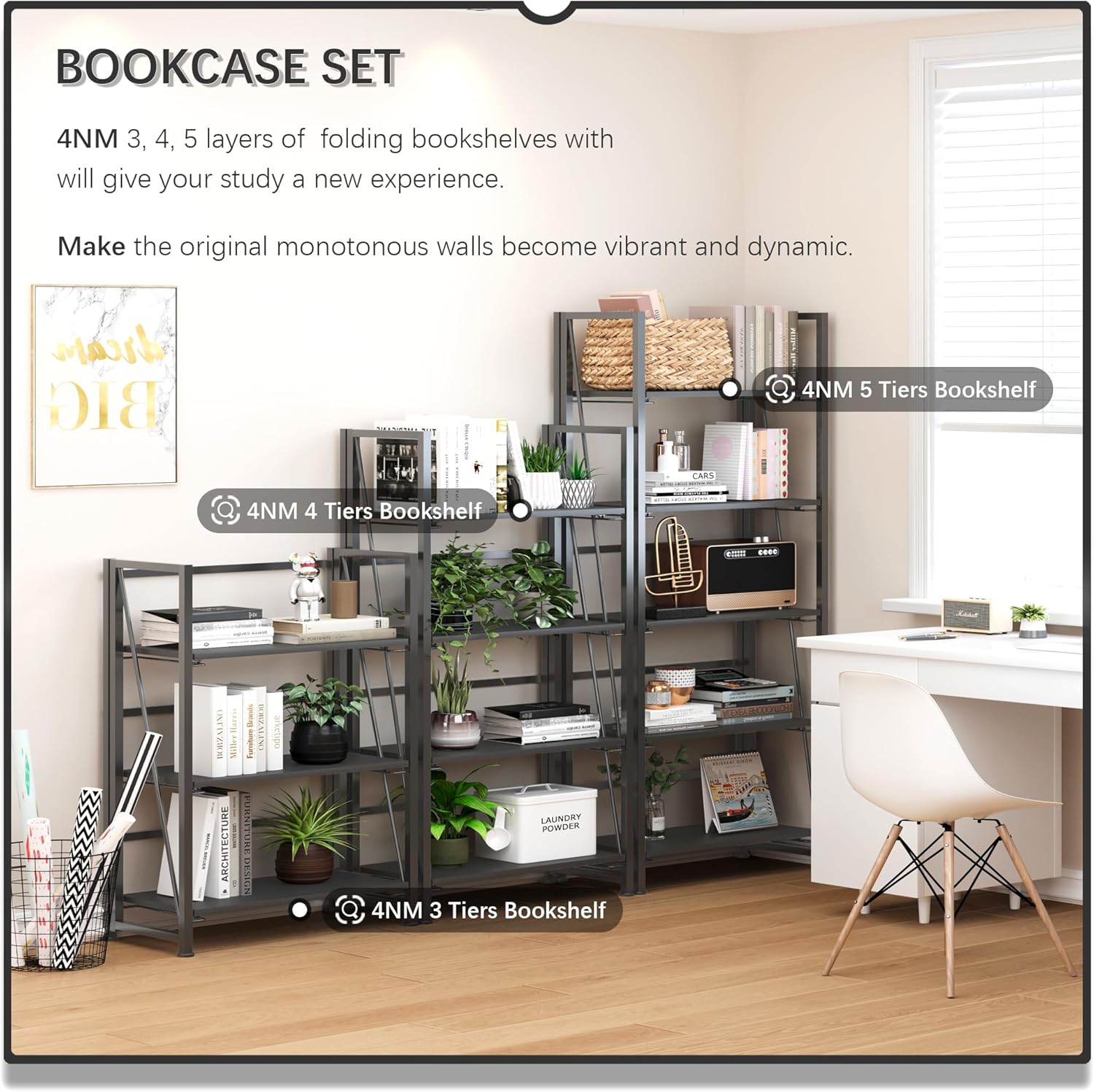 • 【No Tools Are Needed Bookshelf 】No screws need to be installed, and you can say goodbye to complicated installation steps. The foldable design without installation makes it possible for you to completely free your hands. You can unfold and fold up the bookshelf in just 30 seconds