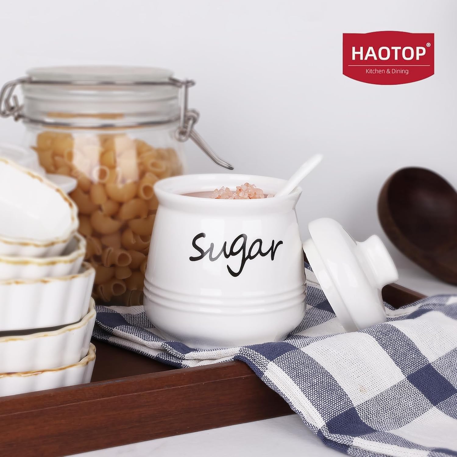 • DESIGN CONCEPT: This sugar bowl is equipped with a lid and a small spoon. The lid can keep your ingredients away from dust. There is a perfect notch on the lid for placing the spoon, so you don’t have to worry about placing the spoon randomly