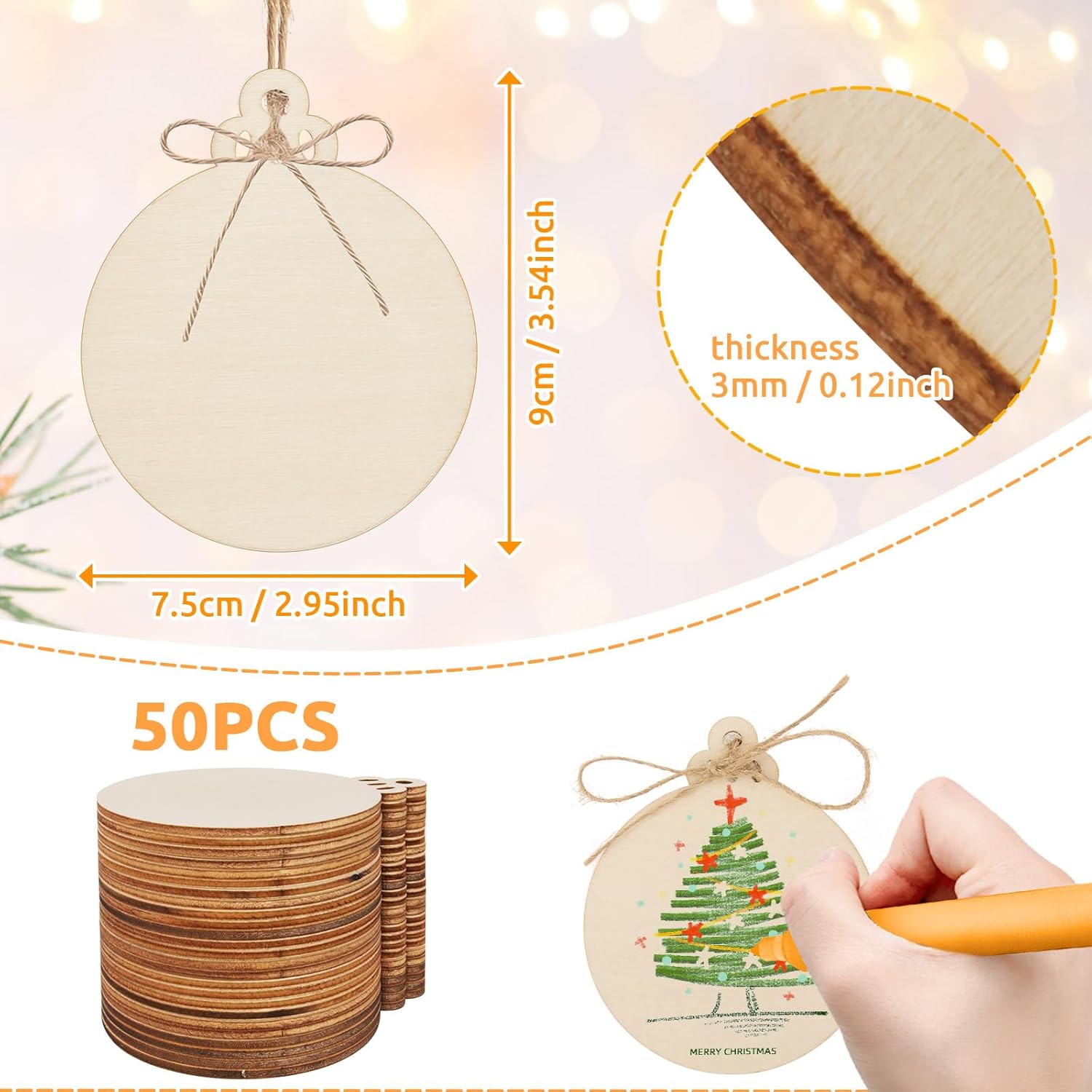 • 【DIY Christmas Ornaments Galore】50pcs unfinished wood ornaments, perfect for crafting your own unique Christmas decorations. These wooden circle ornaments for crafts are ideal for DIY enthusiasts and kids, offering endless possibilities for creativity.