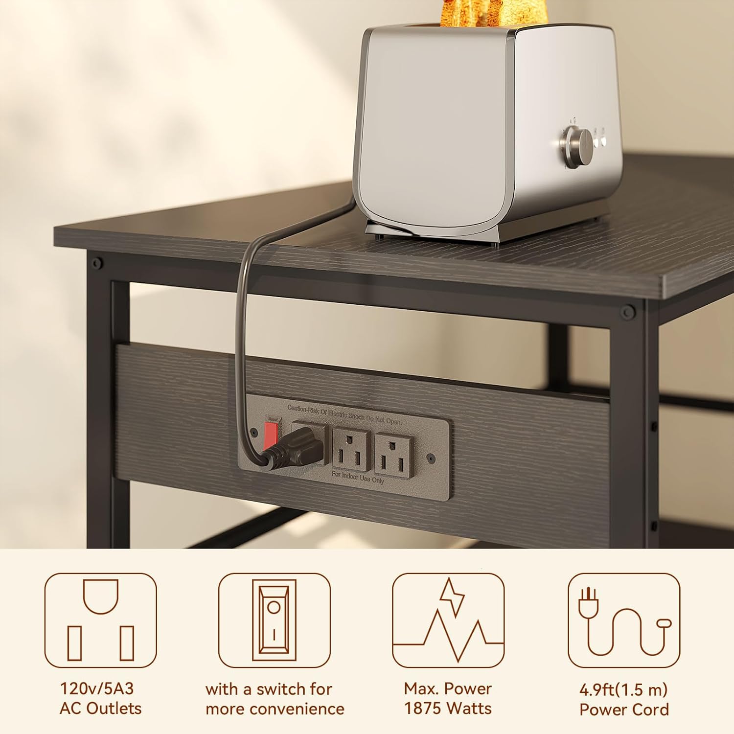 IBUYKE Kitchen Island with Storage, Bakers Rack with Power Outlet,Microwave Stand with Large Worktop,Rolling Bar Cart for Home, Outdoor, Kitchen,Black TMJ029B