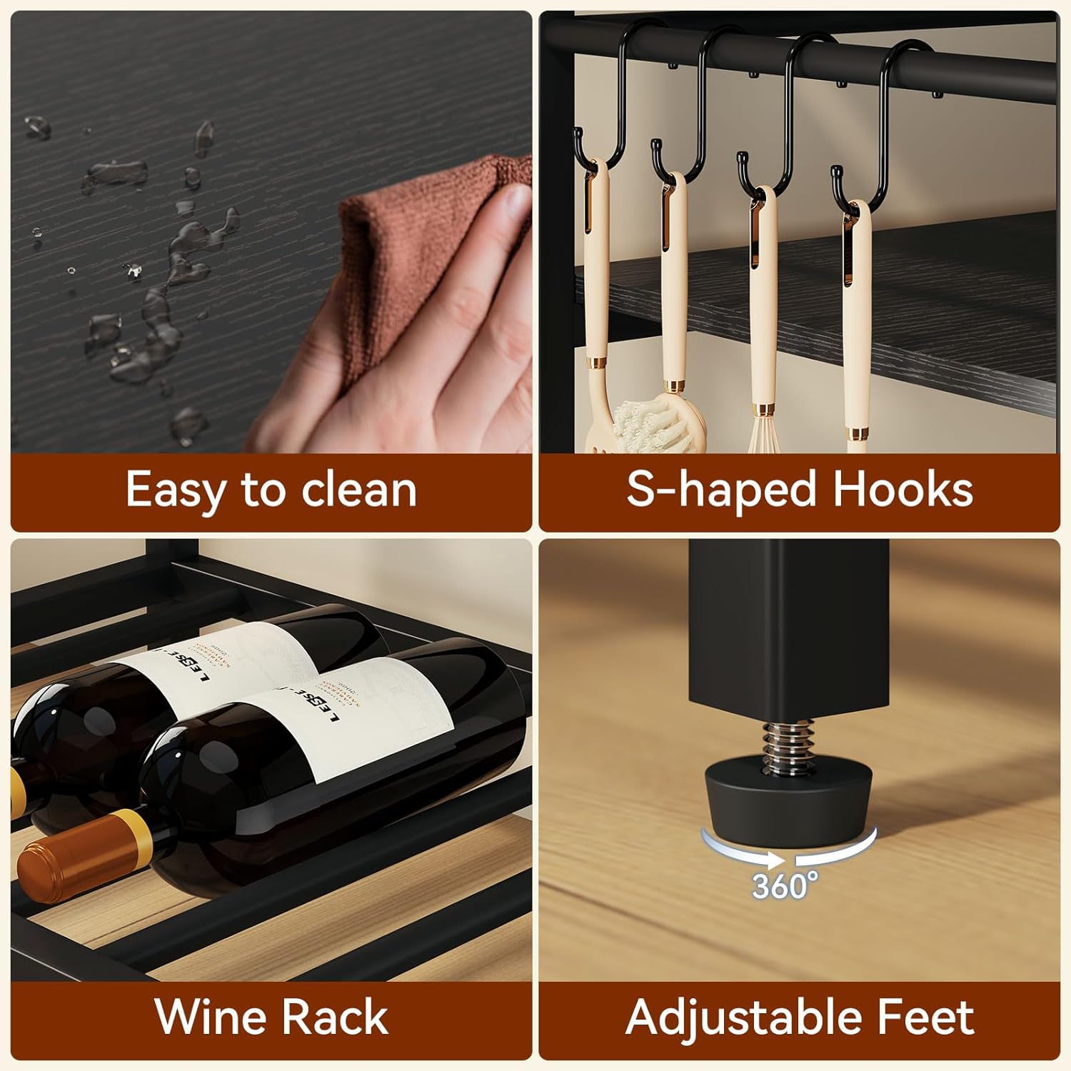 • Multi functional use: can be used as a breakfast table, coffee machine table, or bread rack table, or as a small cart for outdoor party. Equipped with 8 multi-functional hooks, it can be used to hang your various kitchen utensils.