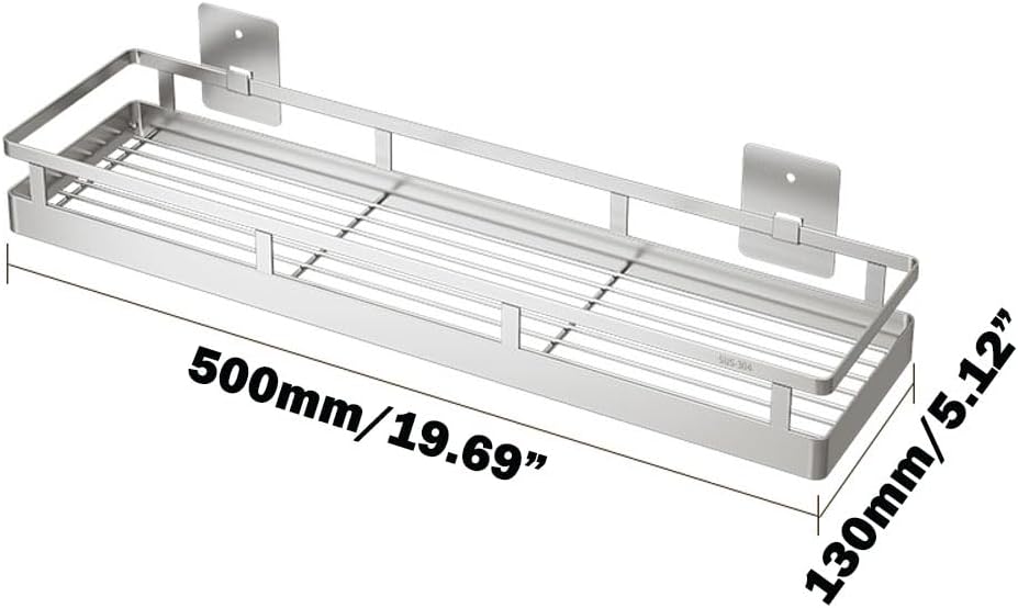 19.69Inch Spice Rack Organizer, SUS304 Stainless Steel Wall Mount Spice Rack Storage Basket, Kitchen Racks, Nail-Free Installation