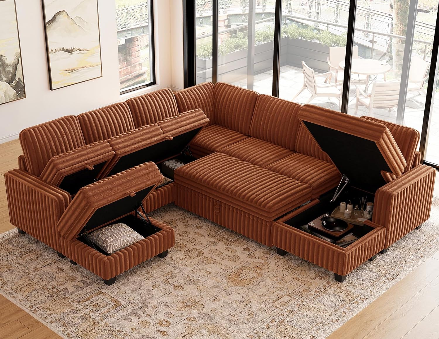 • Storage Seats: Sectional couch with storage. All sections feature storage compartments, offering more than just seating, it’s a smart way to store everyday or seasonal items, ensuring everything is easily accessible and your room stays neat